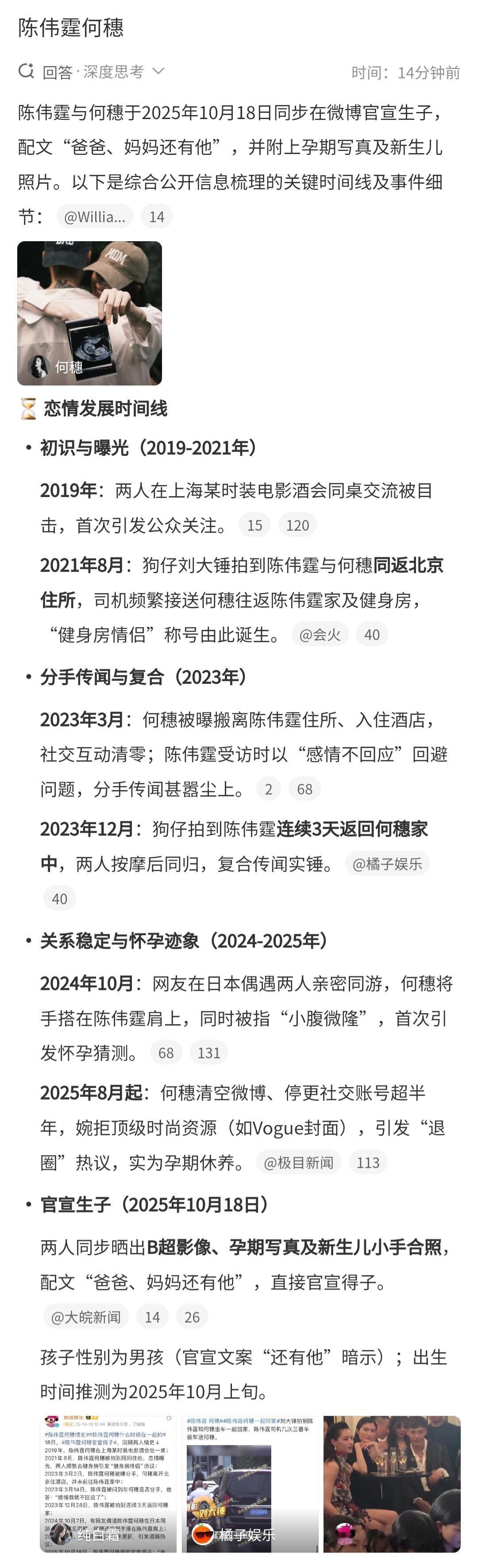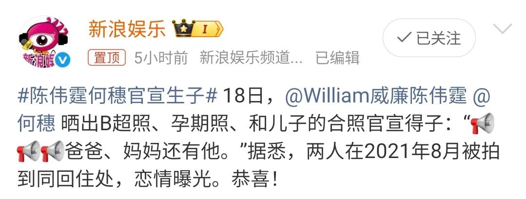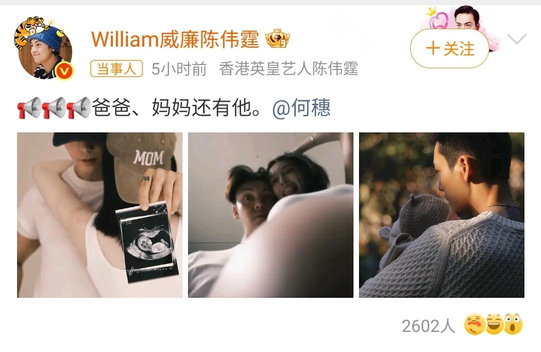 陈伟霆何穗官宣生子,恭喜二位! 看来真是好事成双,陈伟霆先是靠《许我耀眼》再度