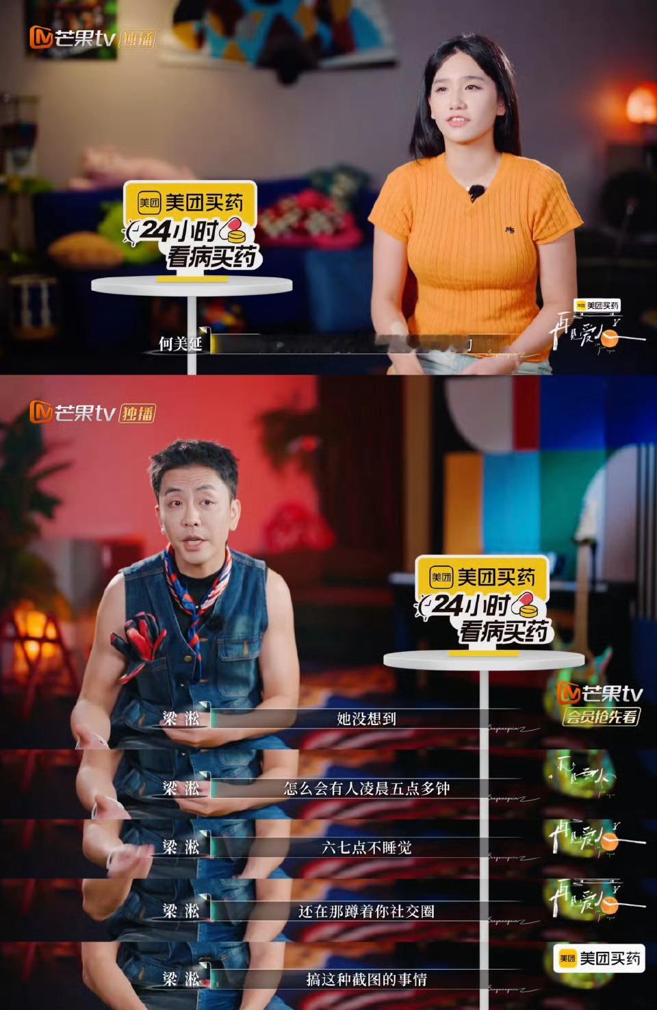 梁淞一个人扛起了再见爱人的笑点 论综艺感只服梁淞!别人尴尬他结拜,别人冷场他接梗,别人吵架他“全身参与”——难怪说吵架累,这位哥连头发丝都在努力造笑点,简直是节目里的永动机式快乐源泉!