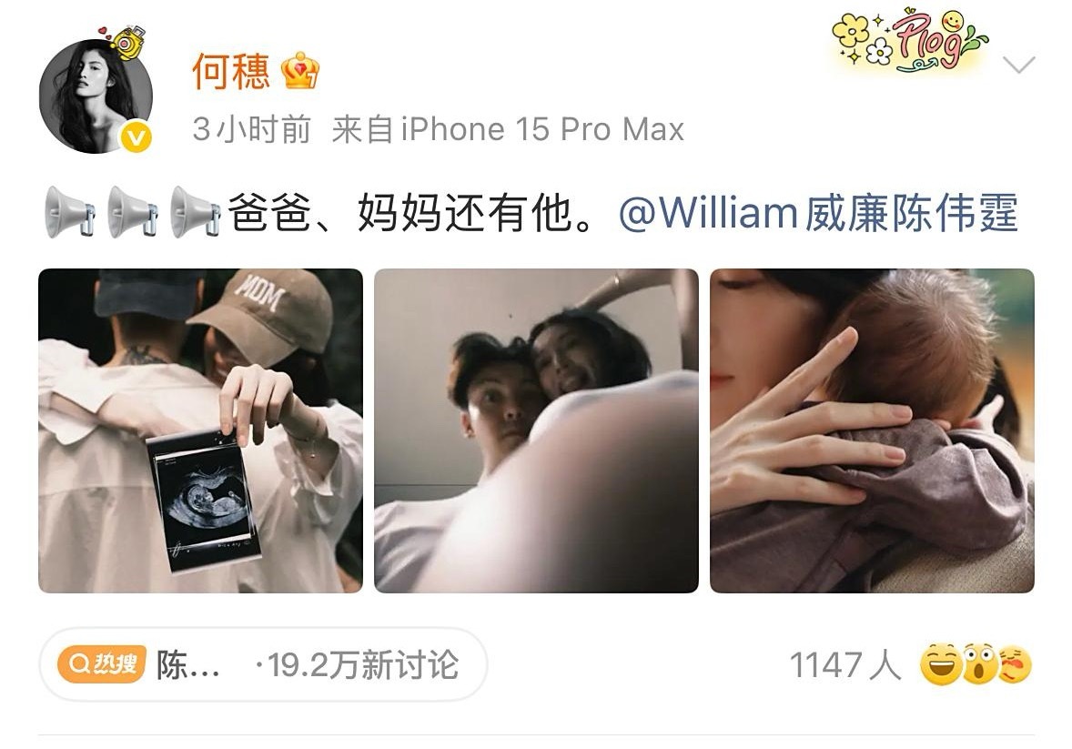 同样是官宣生子,陈伟霆的点赞量和评论量远远超过何穗,不知道正值事业期的陈伟霆会不