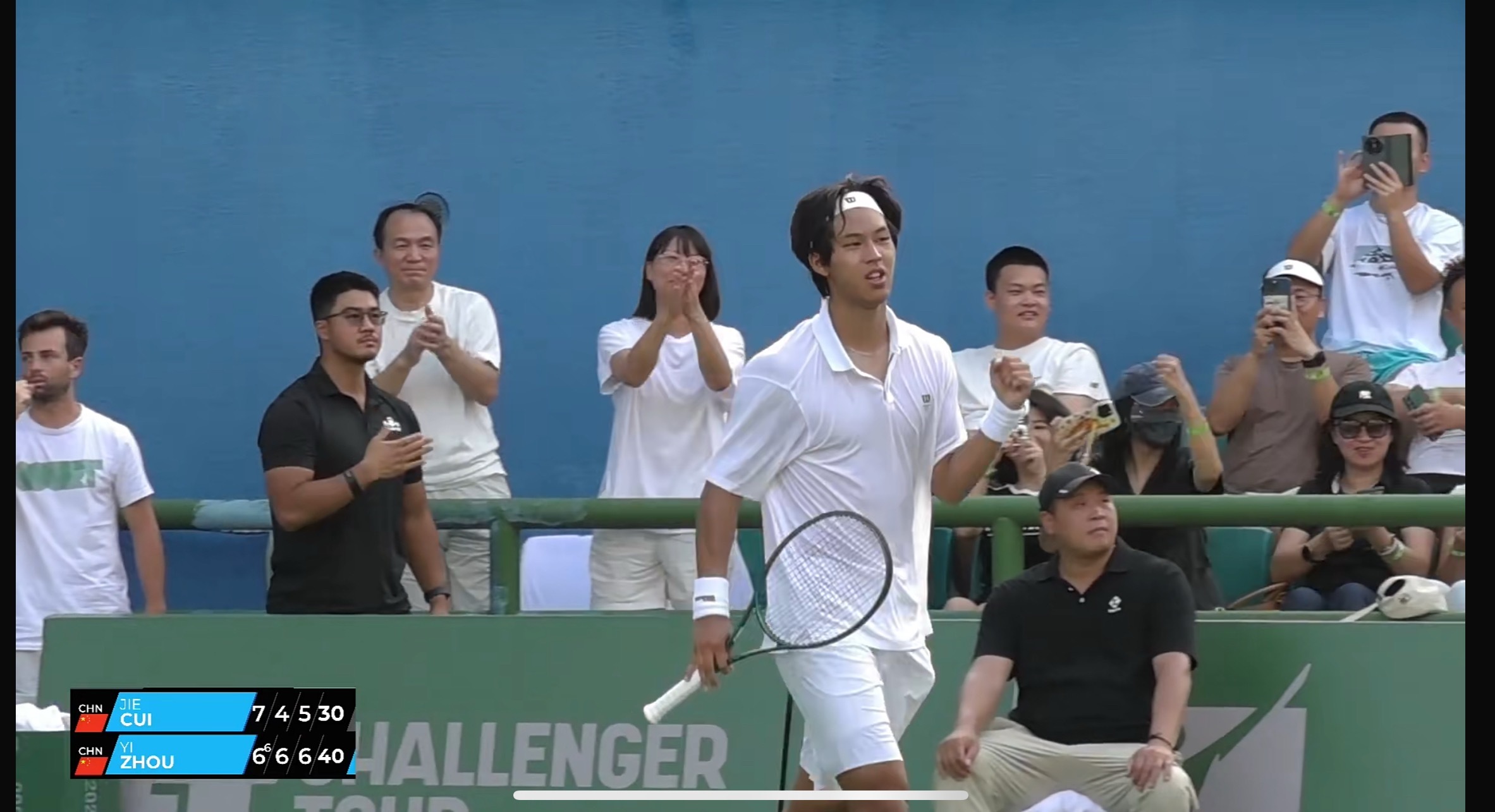 周意大战2小时40分钟,终于以6-7(6)、6-4、7-5逆转崔杰,率先挺进深圳挑战赛的决赛!