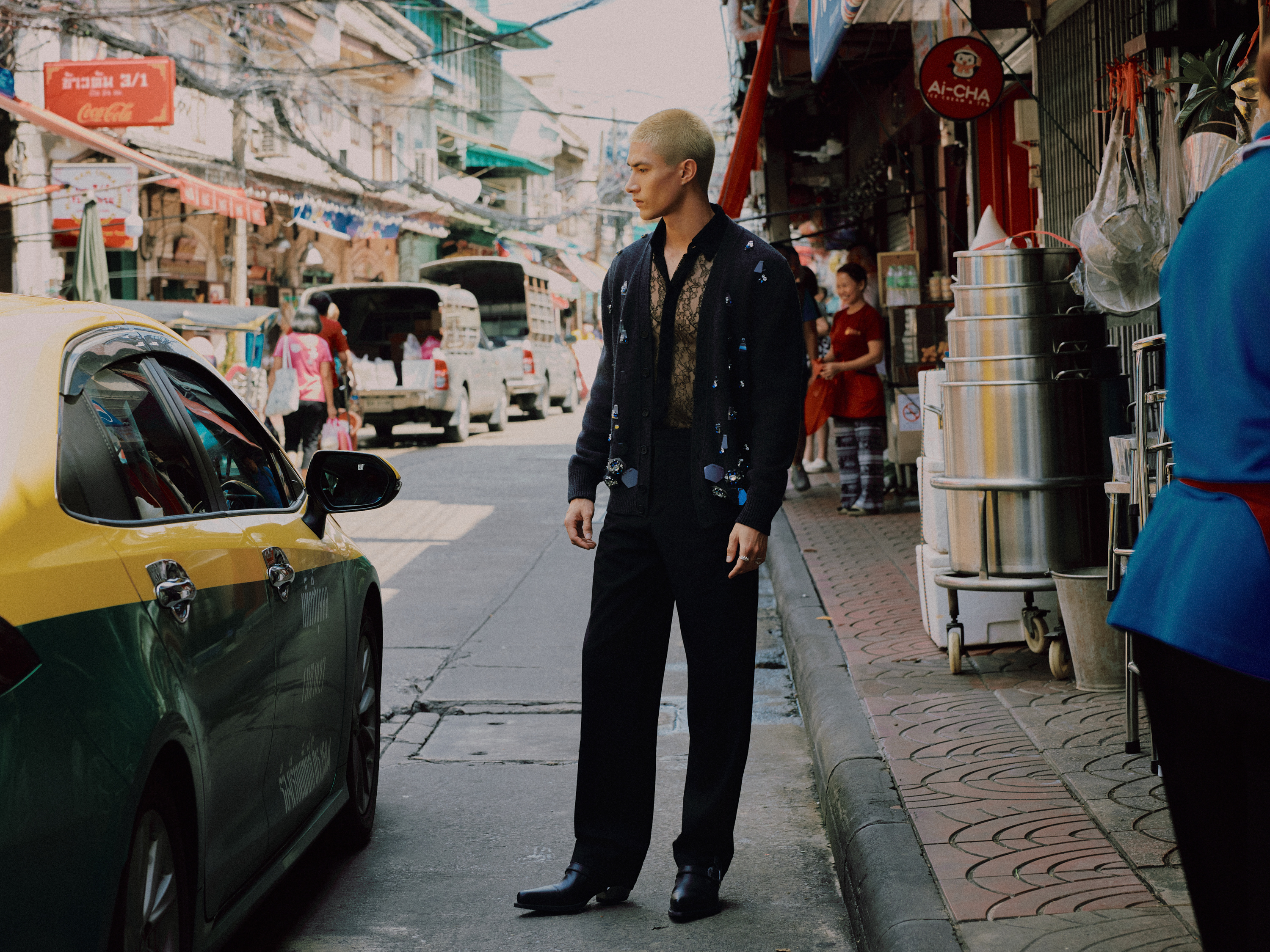 今日 JOOX 音乐节造型大片,身穿 FENDI 25秋冬系列出镜,透视蕾丝内搭映衬若隐若现的性感线条,潮流型男穿行街巷,感受曼谷的热情与音乐热浪🌴🎵