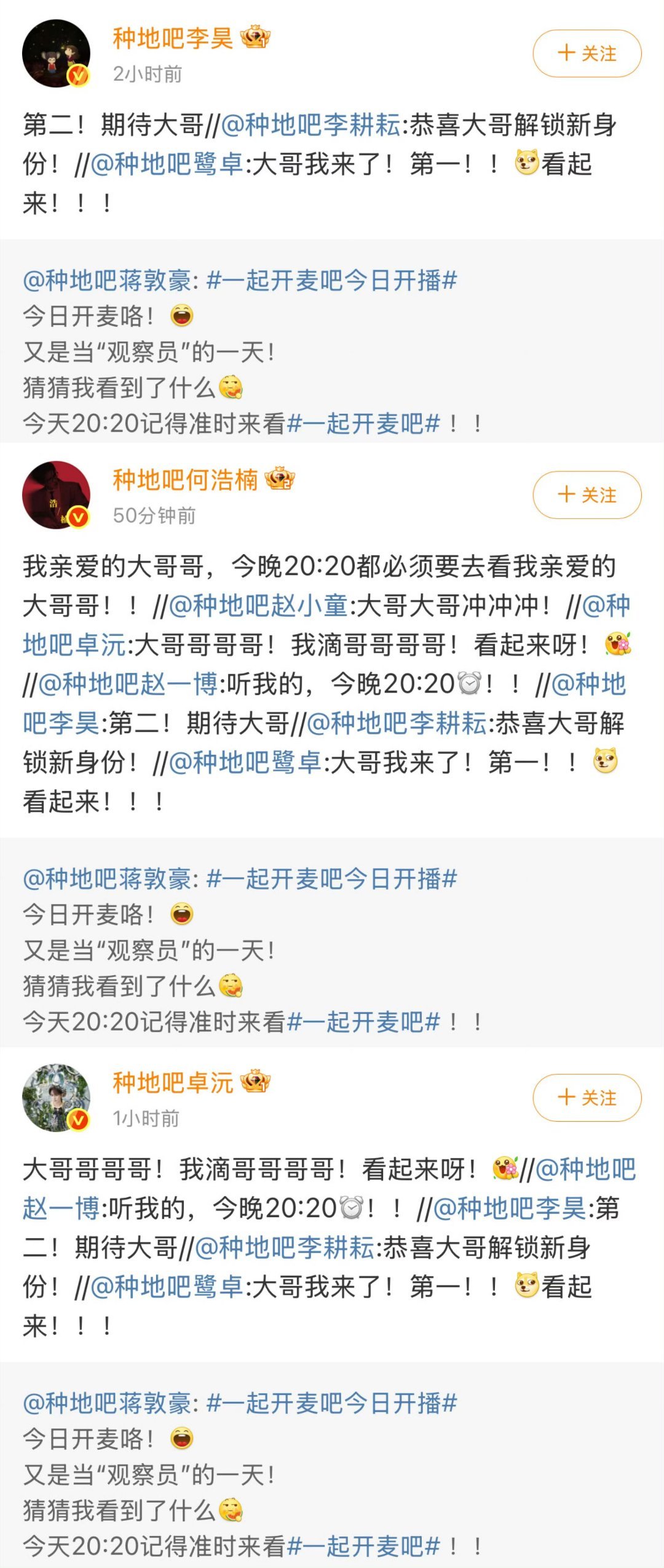 蒋敦豪的九个迷弟走来了 蒋敦豪音综“陪训师”上线!十个勤天迷弟式应援太燃:李昊、李耕耘、鹭卓抢首发声,弟弟们从大棚到音综,把对“大哥”的支持玩成团战,这波打call必须蹲20:20!一起开麦吧
