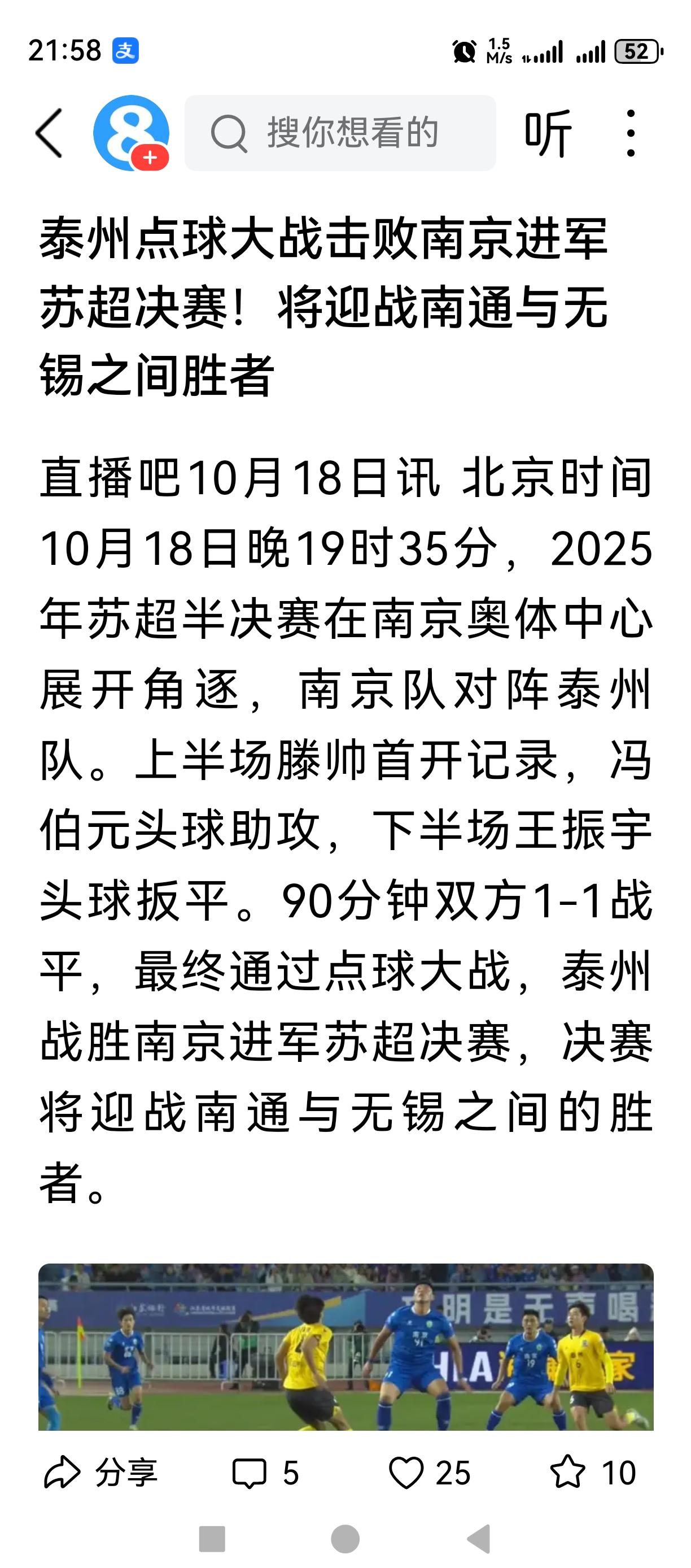 现场去了6万1千人![捂脸][捂脸][捂脸] 泰州点球淘汰南京队,进苏超决赛! 南京先进球,泰州角球扳平!然后,泰州点球大战赢了! 小弟扳倒老大哥! 这业余比赛火过职业足球![呲牙][呲牙][呲牙][赞][赞][赞][赞]
