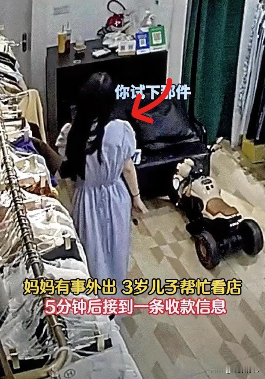 浙江宁波有一服装店老板娘,临时有事出门,就让3岁儿子在店里守店,没想到5分钟后就