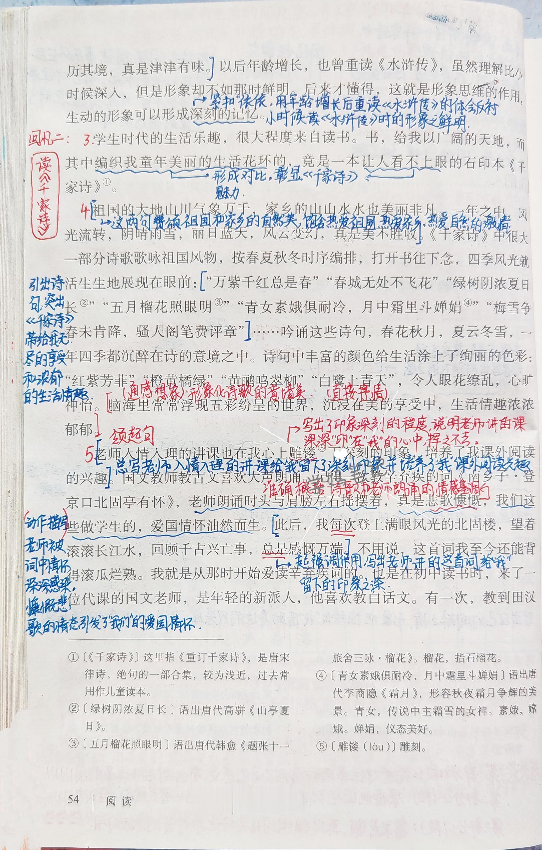 作者主要通过回忆少年时代看山水画,读《水浒传》《千家诗》以及国文老师讲课等往事,抒发了作者热爱自然,热爱生活,热爱祖国的神情,表达了对国文老师的怀念与敬仰,也强调了多读书,读好书,对人成长的重要性。希望青少年从中汲取力量,明做人之理,做志趣高尚的人。