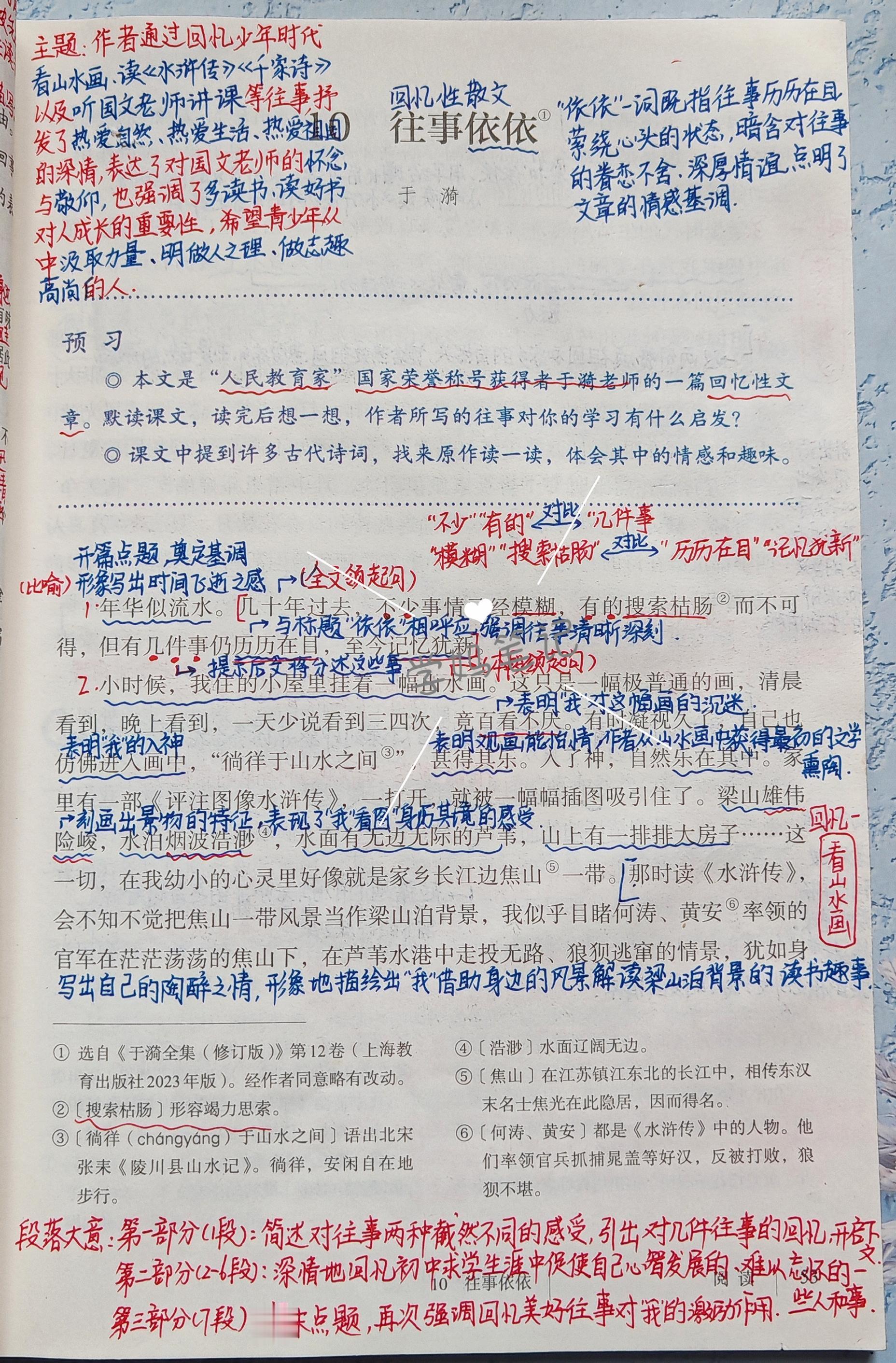七上语文课堂笔记-10。《往事依依》是一篇回忆性散文题目中的一音一词。地址往事历历在目,萦绕心头的状态也暗含对往事的眷恋,不舍深厚情谊点明了文章的情感基调。