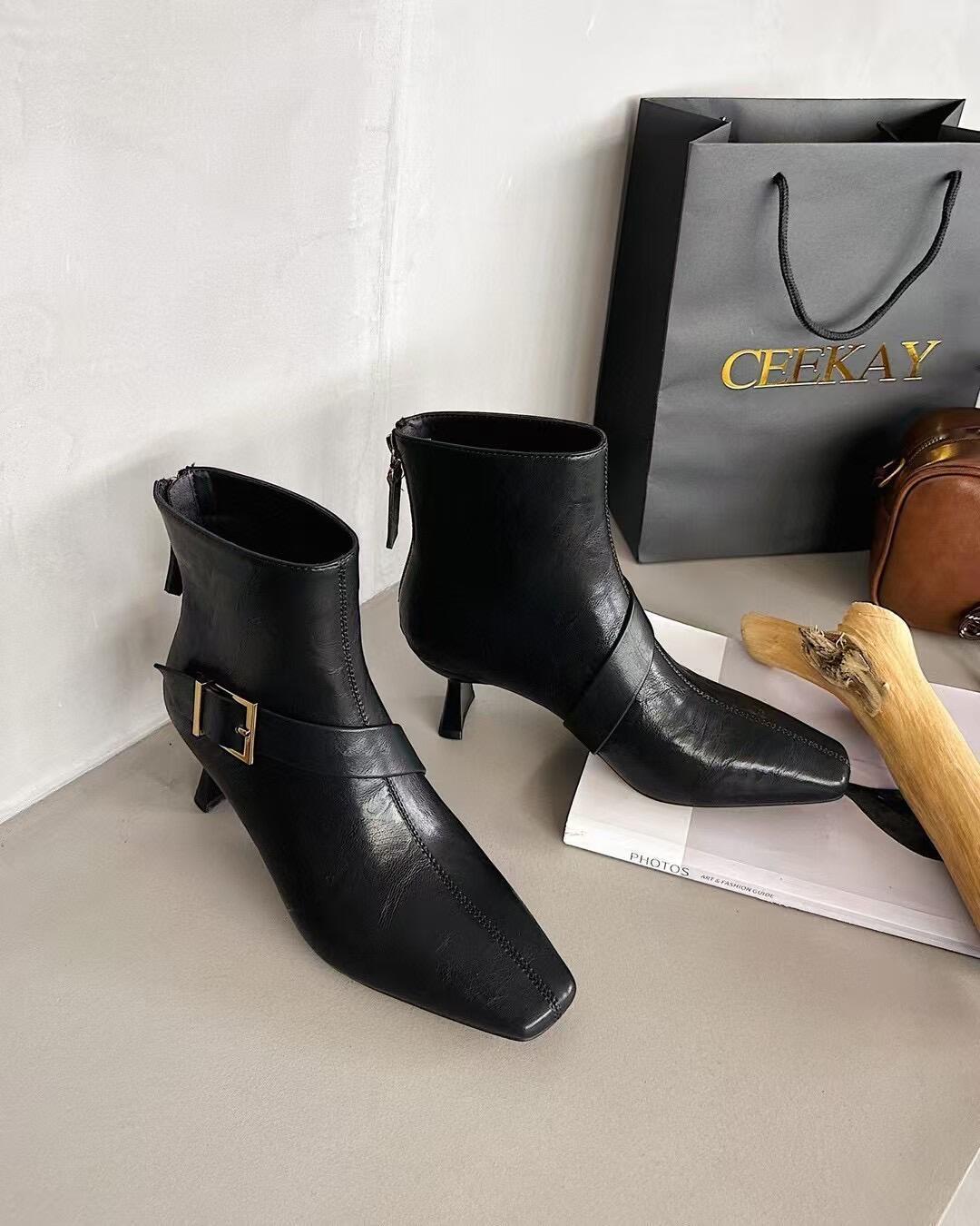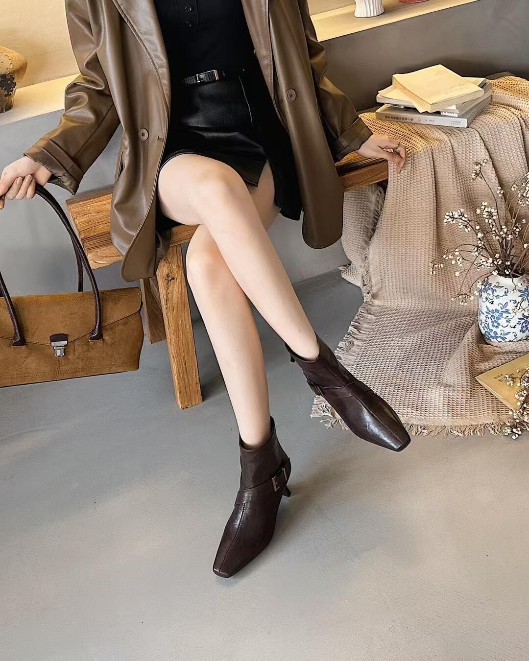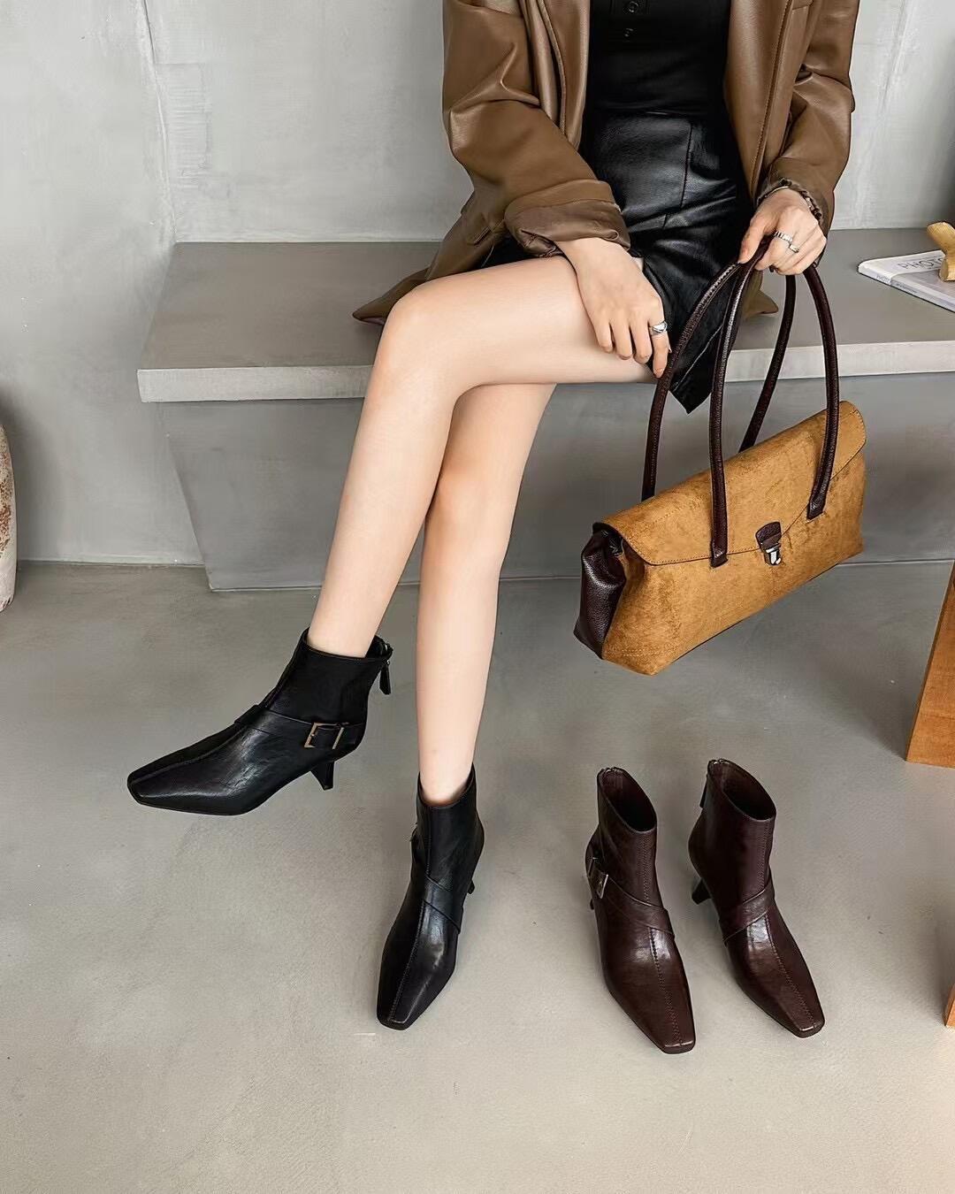 时尚鞋履复古方头高跟靴子,秋冬高级感直接焊死!👢