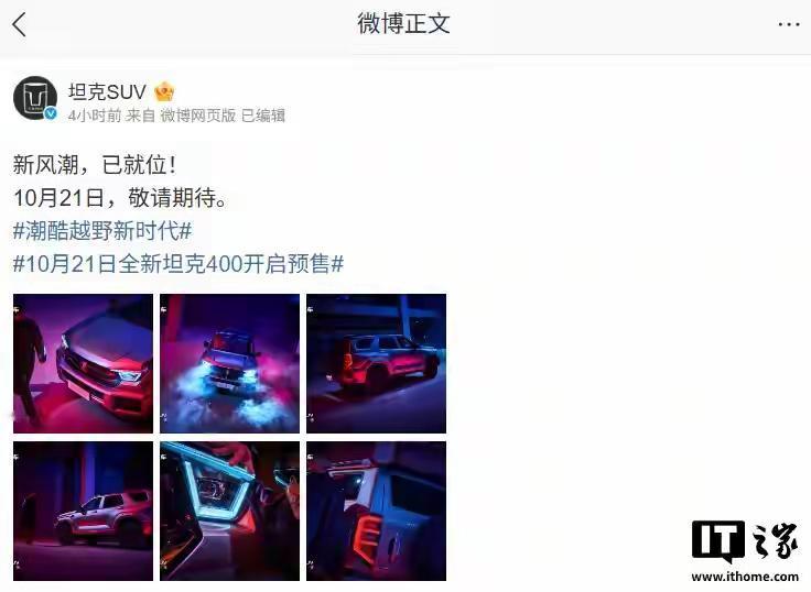 越野圈要变天了!坦克官方官宣:新款坦克400将于10月21日正式开启预售,不仅首