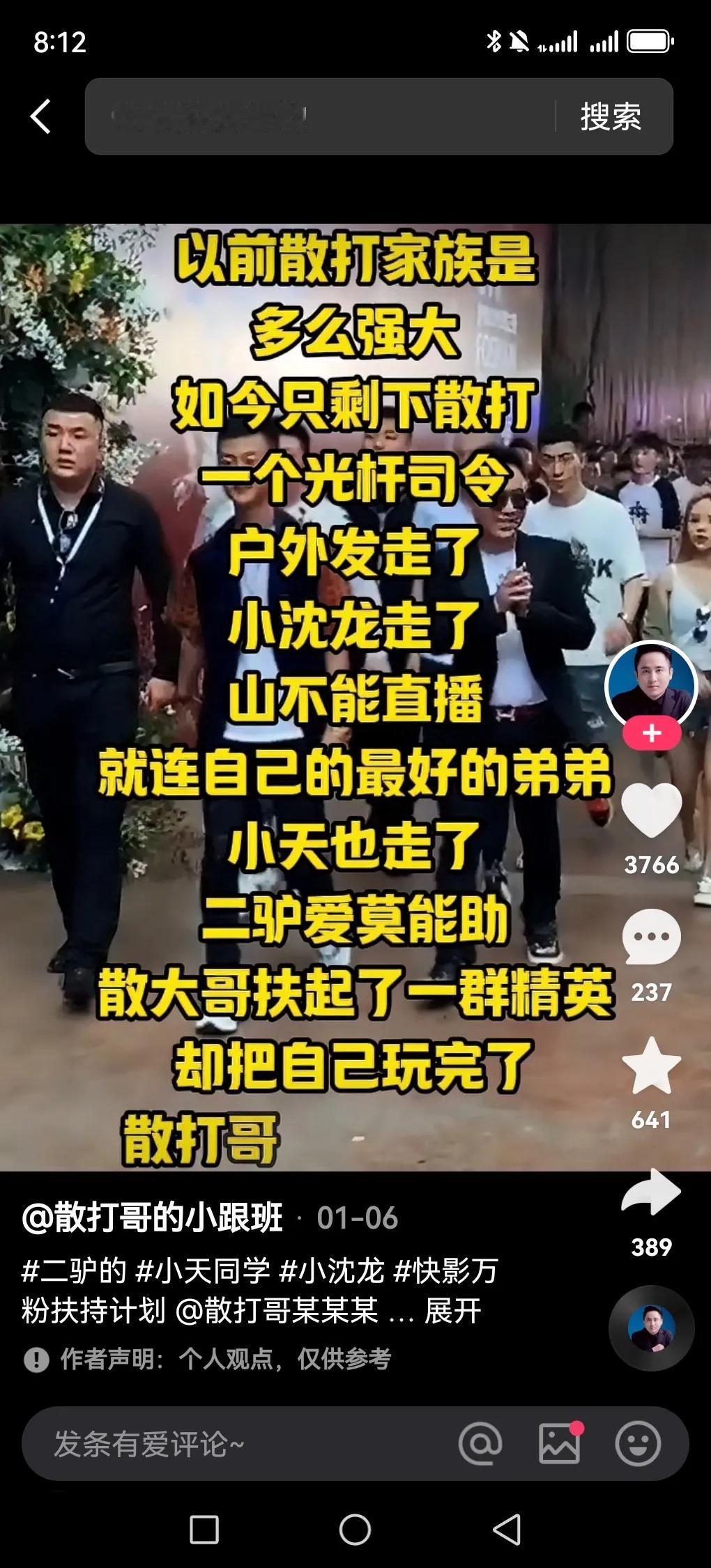 每天5点带你笑,户外男神祁天道!以前天道下午五点直播间都是上百万人,是当年的人气王,天道的人气那么高离不开他的师傅散打,散打当年把他当接班人培养,经常给天道点关注,天道很放下身段在直播间像直播间喊爹喊妈,并把粉丝称为“爹妈团”,把散打的粉丝全部洗成自己的了,最后,天道居然背叛了散打,成了全网粉丝量人气量最大的逆徒。天道经历过两次封杀,第一次:是因为诈骗,所有人都以为天道在也回不来了,毕竟诈骗是犯罪,在社会连工作都找不到,没想到KS官方可能为了人气,居然给天道解封了!不禁令人啧舌。第二次:虽然解封第一次,但天道人气受重创,毕竟诈骗,很多人都不愿意看他,于是,天道想了很多方法,最后居然调戏女性博眼球,用小竹竿挑女人裙子,最后别新闻报道,遭永久封杀!现在还是封杀状态,以后不知道会不会在解封,毕竟诈骗都可以解。