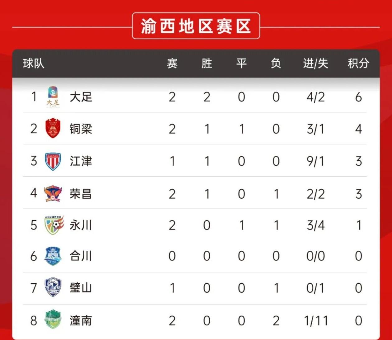 两场比赛丢11球!潼南队要提升防守啊! 渝超联赛积分榜更新,在渝西赛区排行榜中,潼南队两战两负排名小组垫底,两场比赛丢11球也成为了渝超联赛唯一丢10球以上的球队。 虽然渝超联赛都是民间球队参加,但是大家对胜利的渴望比国足还要强烈,经历两场惨败的潼南队球员现在的心情肯定是非常难过,希望他们在未来比赛中先从提升防守做起,争取为球迷赢得首场比赛!