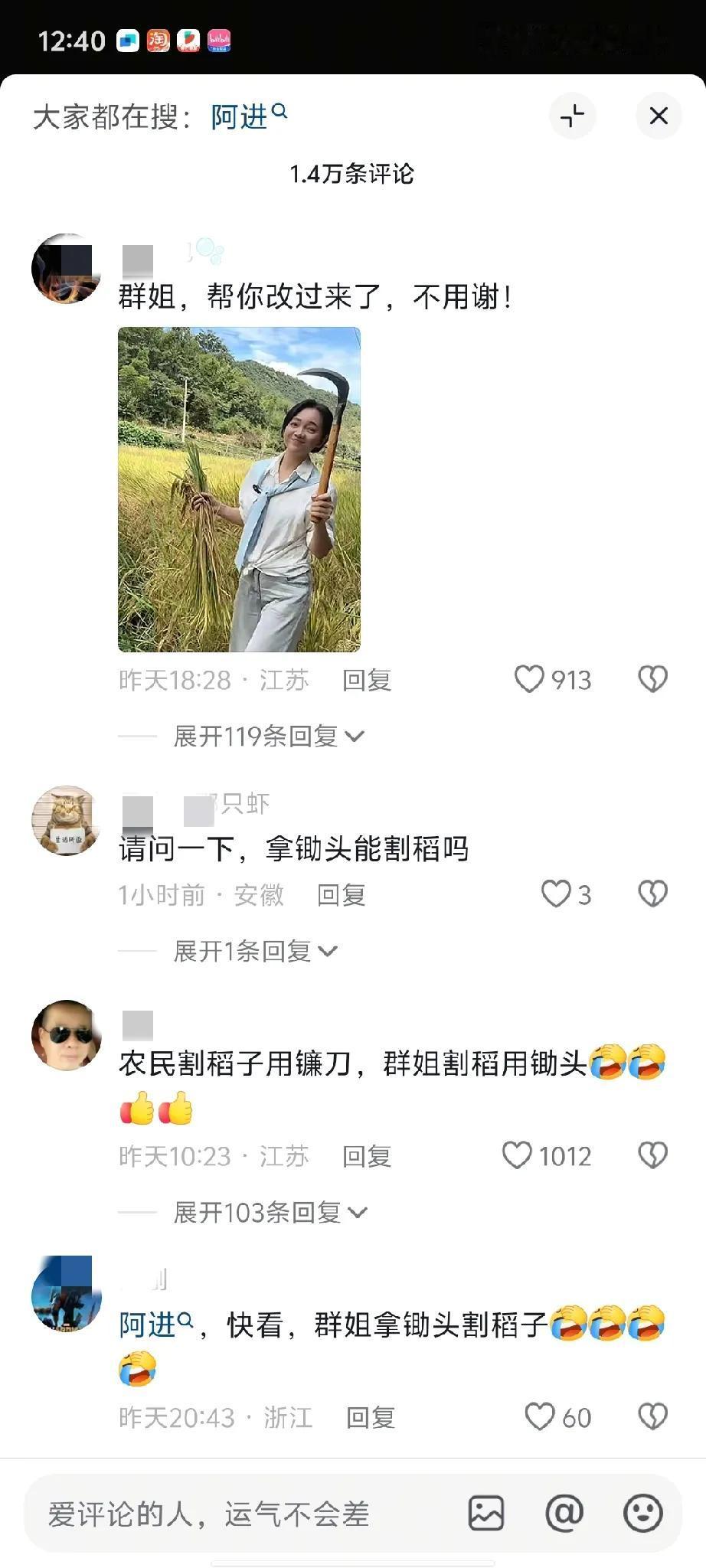 安徽台的周群也太有意思了!人家割稻子都用镰刀,她手里拿的居然是锄头! 用诗人徐