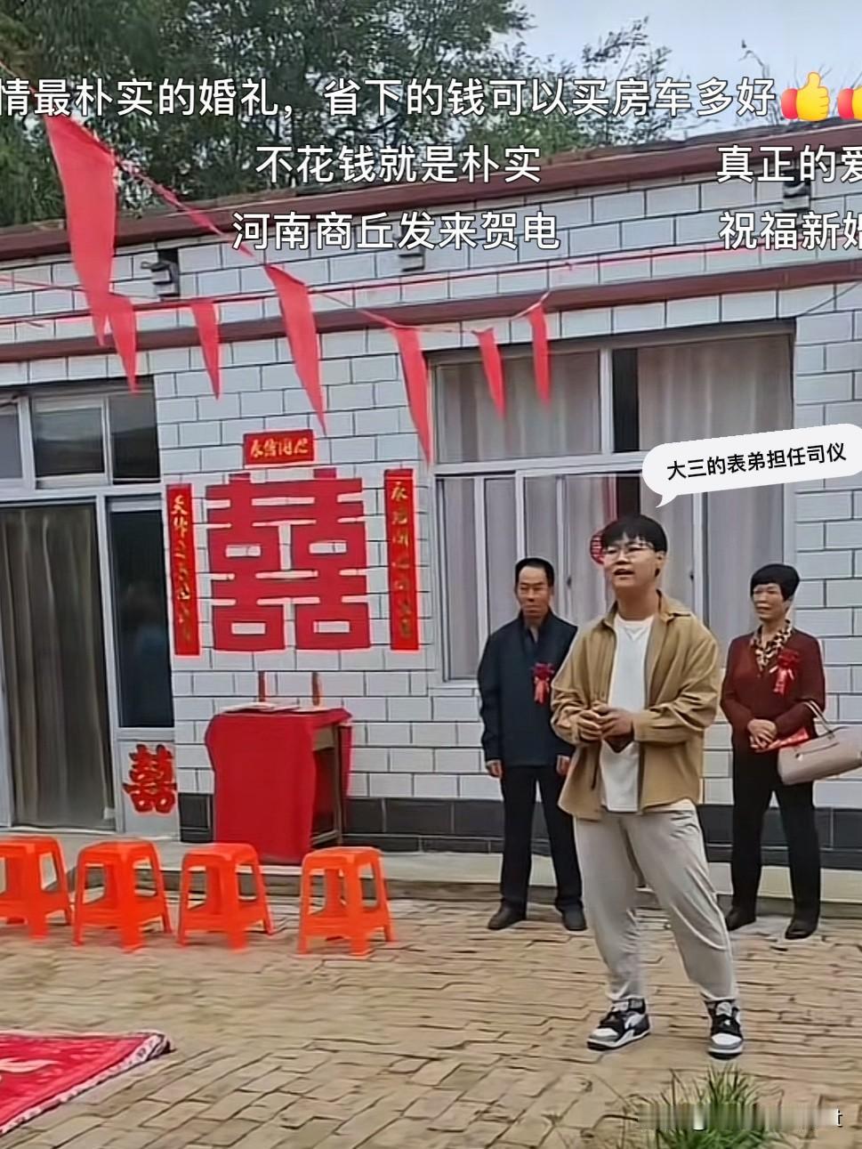 河北两名博士婚礼 因寒酸而登上热搜 婚礼主持由读大三的表弟担任 婚礼现场简洁朴素,没有婚纱 也没有婚车,因为男方家庭来自农村,女方主动要求简办 有亲戚透露说:司仪是上场前3小时才接到任务,草草上阵。女方知道这个家庭培养了一个研究生一个博士生,而且都是农民没有经济来源只靠种地,要求简办,亲戚看着过于简单才找的孩子给主持的婚礼!! 我想说:当你的学识达到一定的高度的时候 世俗就会变得一文不值,他们的婚礼也不是寒酸,是心理强大到不需要那些华而不实的物质来支撑 恭喜两位博士新人,他们跳出了世俗对婚礼的物质绑架,让婚姻回归了两个人相爱的本质,这种选择远比奢华场面更有力量。 博士生的婚礼