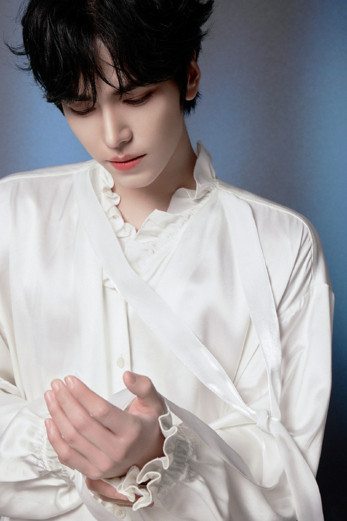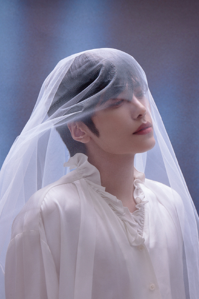 ​​​邵子恒繁花白西装白纱遮面生日照邵子恒生日照