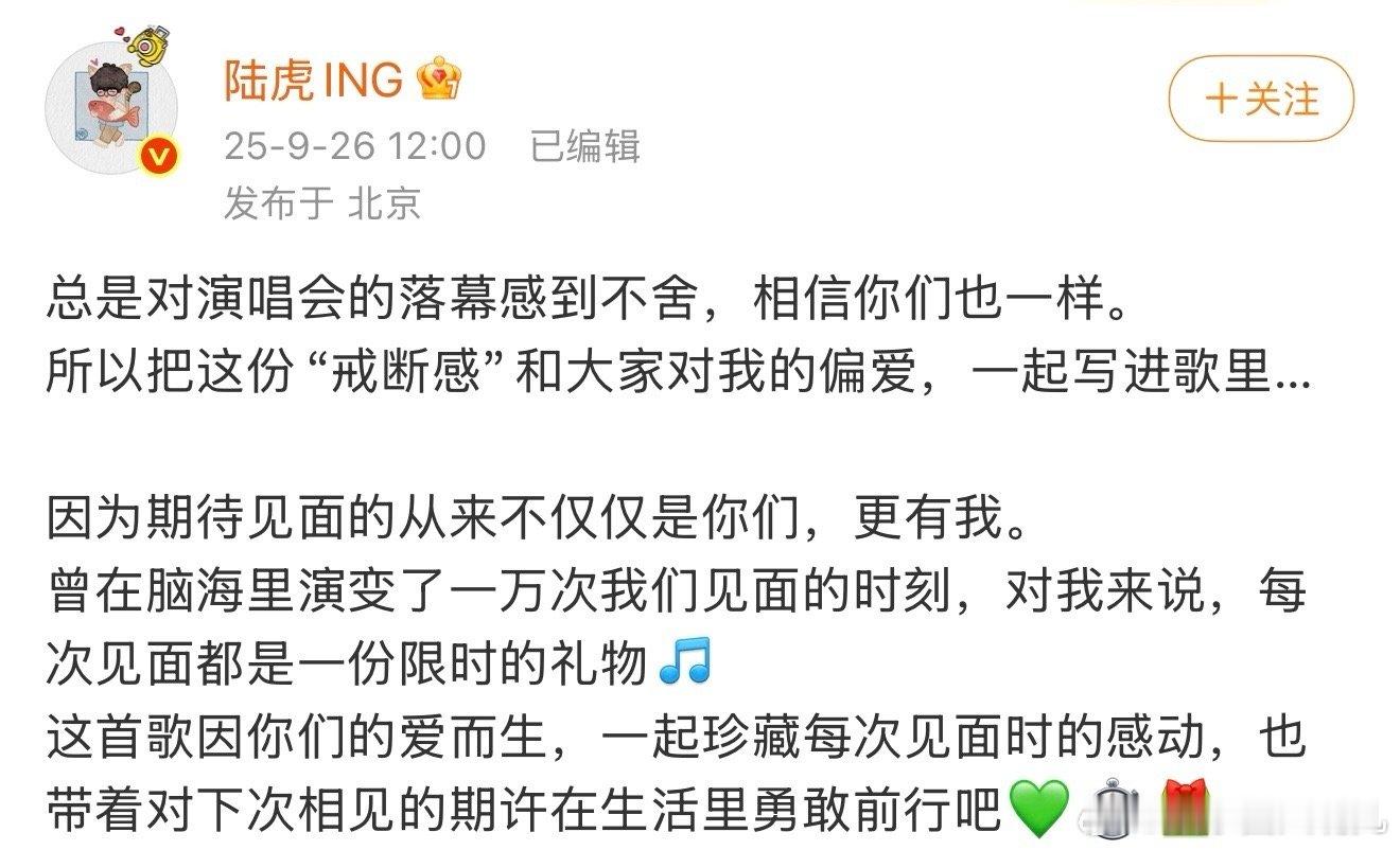 陆虎你也很难戒断吧 演唱会散场后,陆虎的戒断反应藏不住了。躲在台下悄悄望着空下来的观众席,红了的眼眶、下意识抹泪的动作,全是对这场相聚的不舍,双向的留恋太戳人。