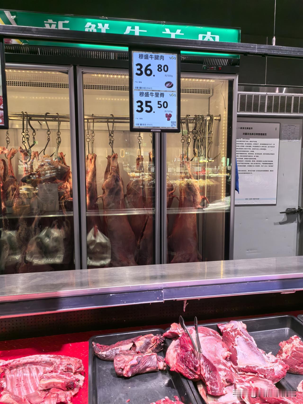西宁一家亲生物园店的牛肉,最低都要卖到35元!这价格比外面普通肉铺可高出不少! 我去这家超市买肉,一看标价,心里一惊:牛里脊35.5元/斤,牛腱肉36.8元/斤,精品牛肉37元/斤。 而在不远处的紫恒帝景小区门口,有家牛羊肉铺,我问了一下,每斤才32元,肉也挺新鲜,根本不搞什么“精品”“普通”的区别。 后来我问了互助县的一家肉铺,价格也一样,32元/斤,而且还是北山的草膘牦牛肉。 对此你怎么看?欢迎评论区留言分享。 秋日生活打卡季