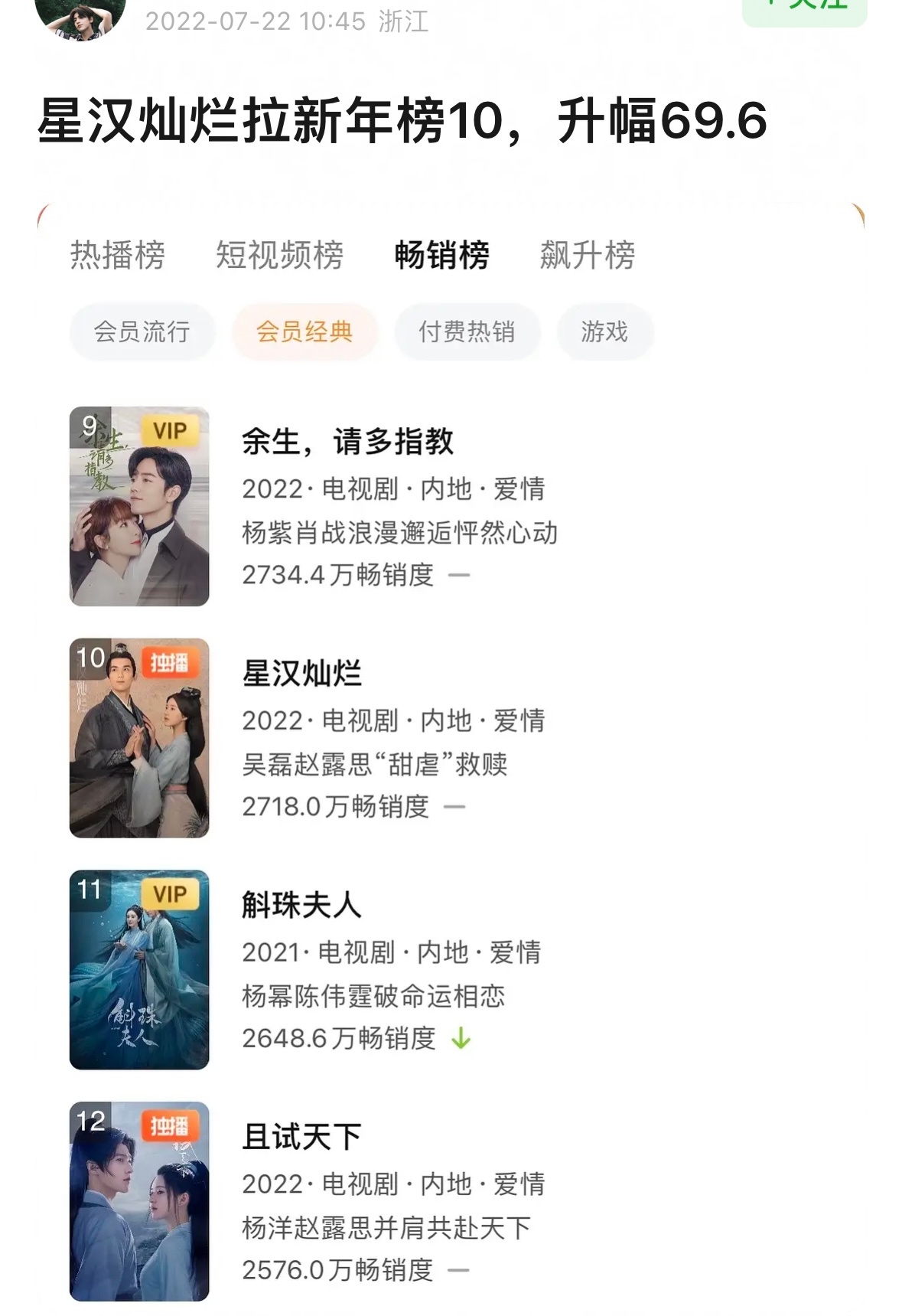 所以大声更正:星汉灿烂开播第六天进入年榜第二十九位