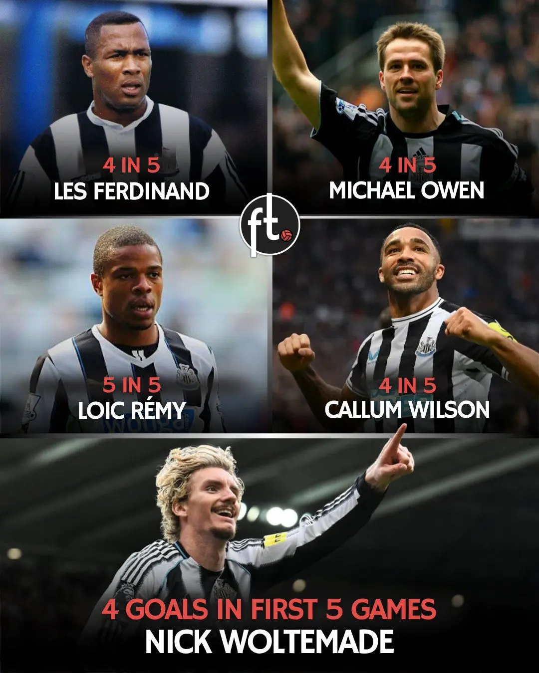 尼克·沃尔特梅德为纽卡斯尔联出战的前5场英超比赛中已攻入4球。