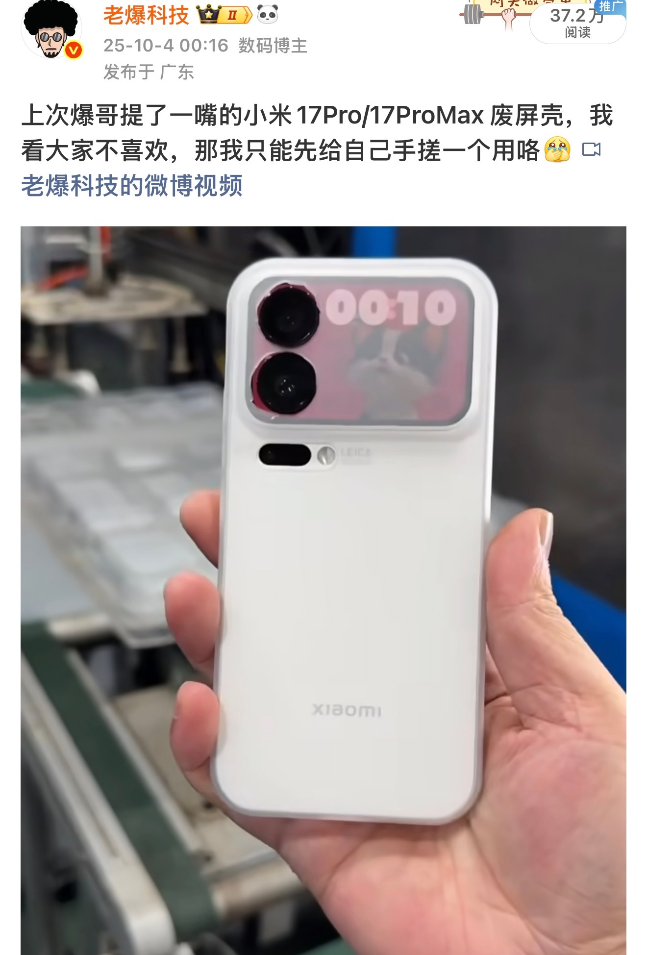 小米17Pro/17ProMax 废屏壳概念9月24就提出来了,10月4号就 diy 出来了实物。