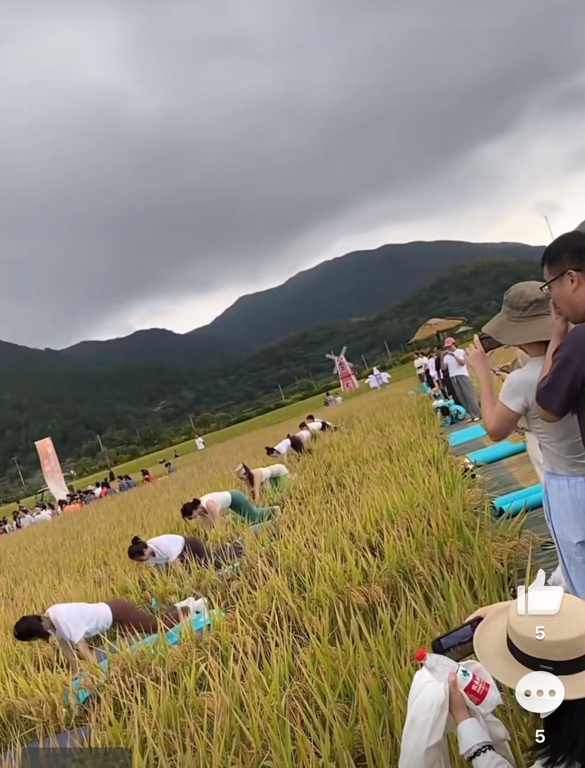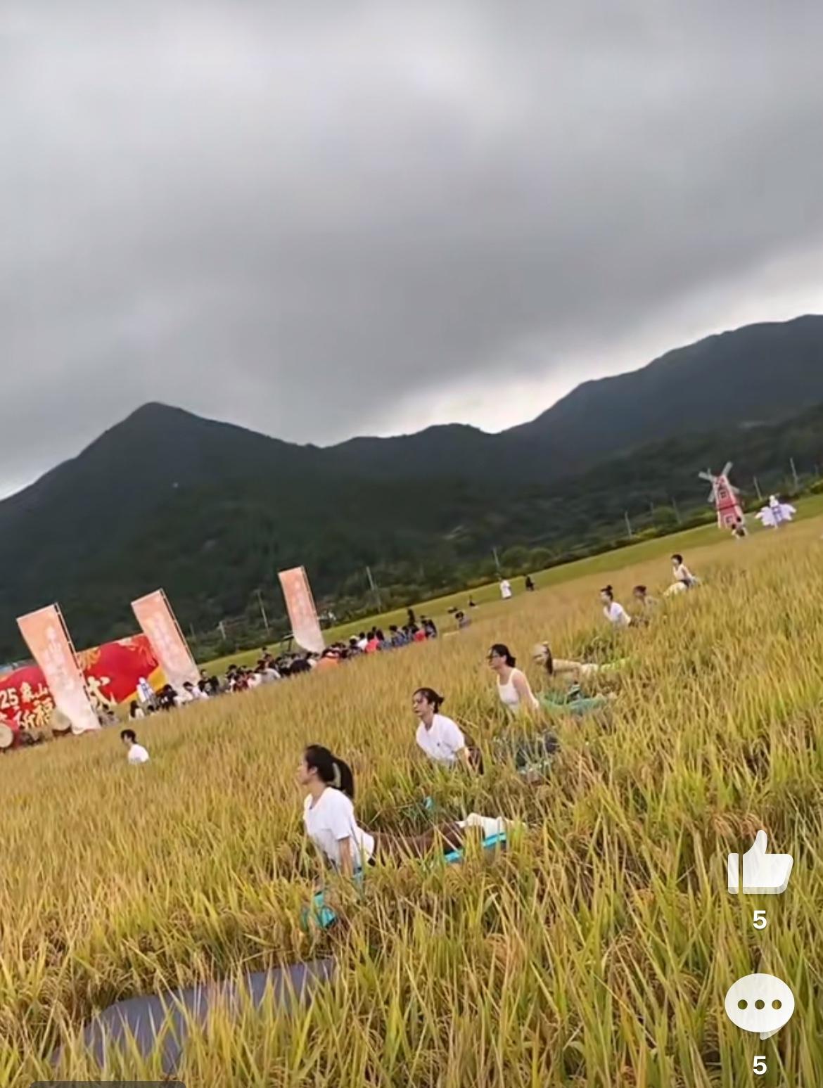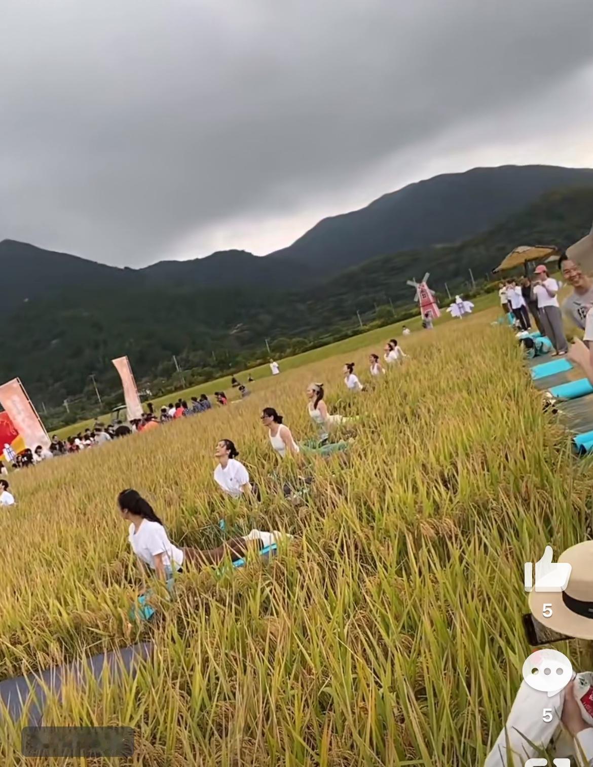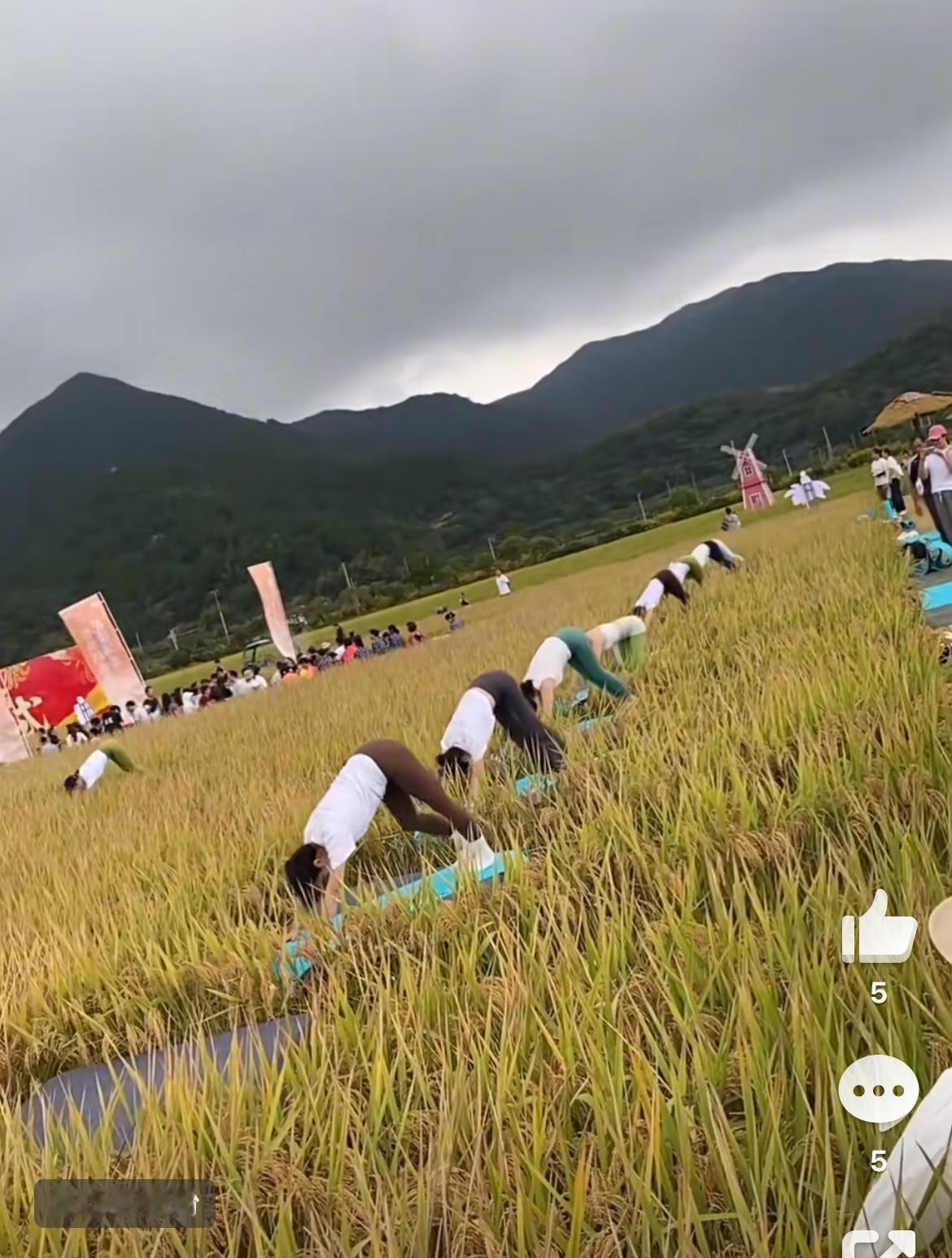 一堆小仙女在丰收的稻田里练瑜伽,多少空旷的地方可以练习,为啥要破坏稻田,去农田里练。这是个什么行为艺术,非得到稻田里完成吗?浪费粮食可耻,肆意破坏丰收的稻田更是缺大德,对粮食没有敬畏,一群吃饱了没事干的人。瑜伽自然风光 公园瑜伽