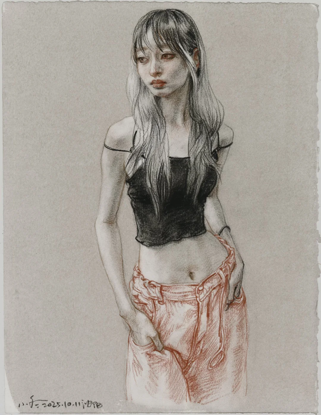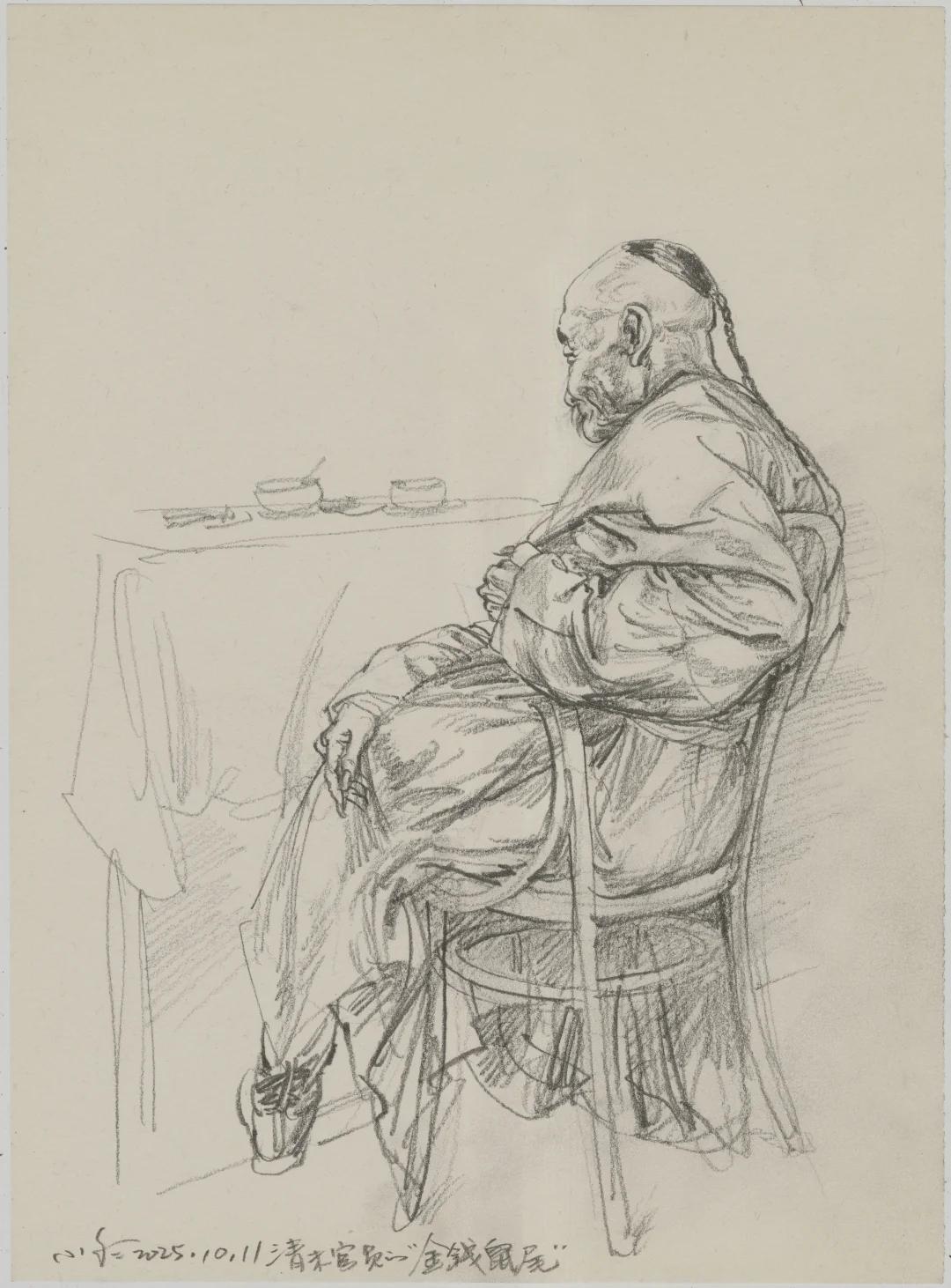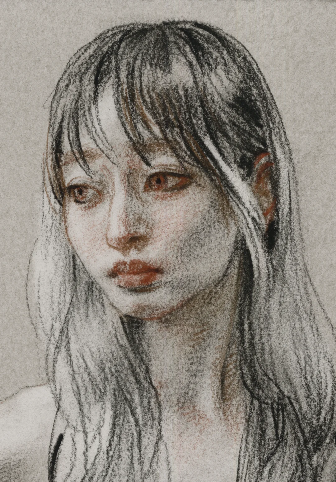 劳累匆忙的间歇是一些被切碎的时间,画不了油画,更无法进行大创作。一些互不关联的素描画了不少。这次回沈阳画了九张,仅有一幅九十一岁老母亲是写生,其它都是用各类图片资料做素材完成的。