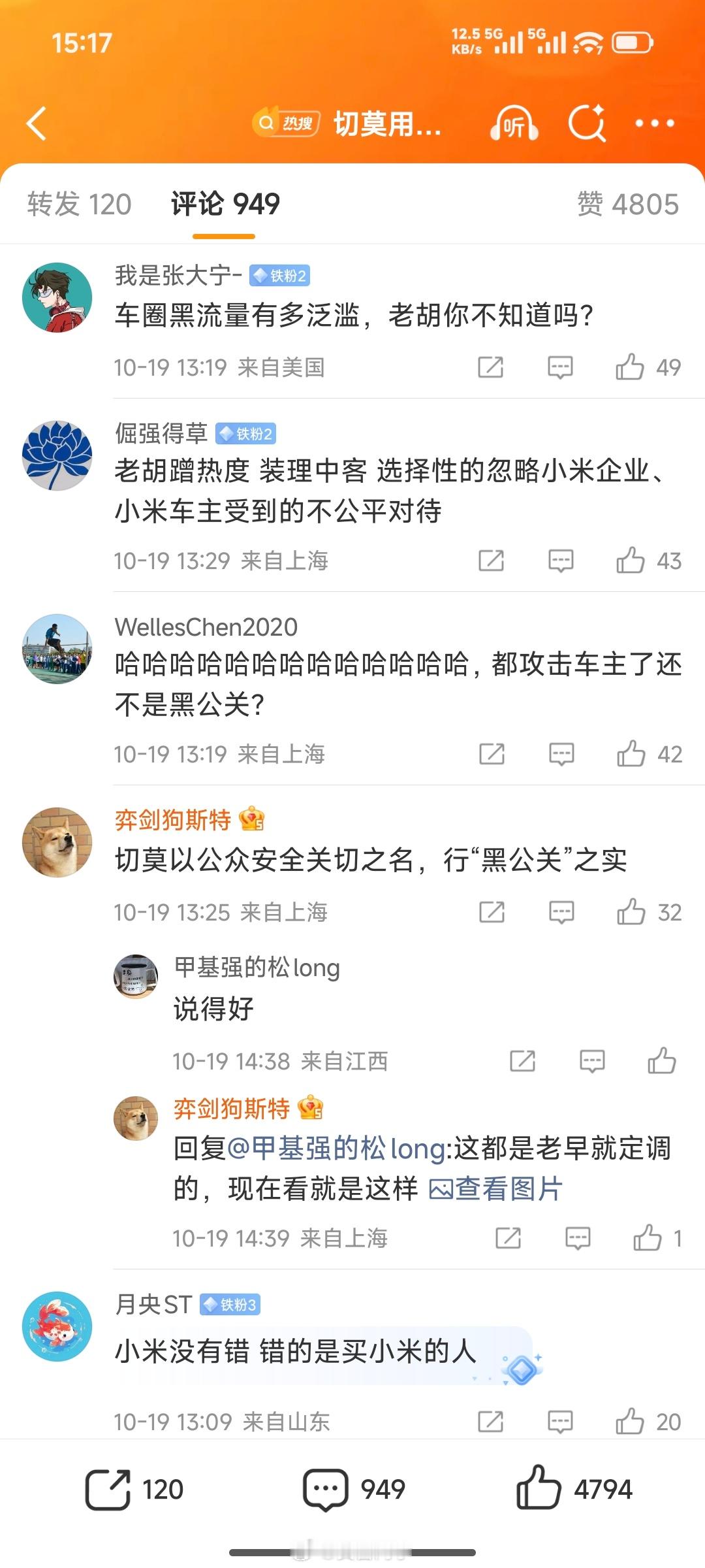 胡锡进谈小米呼吁抵制黑公关和水军这一次评论区好像没有刷到“老胡中肯” [微笑]