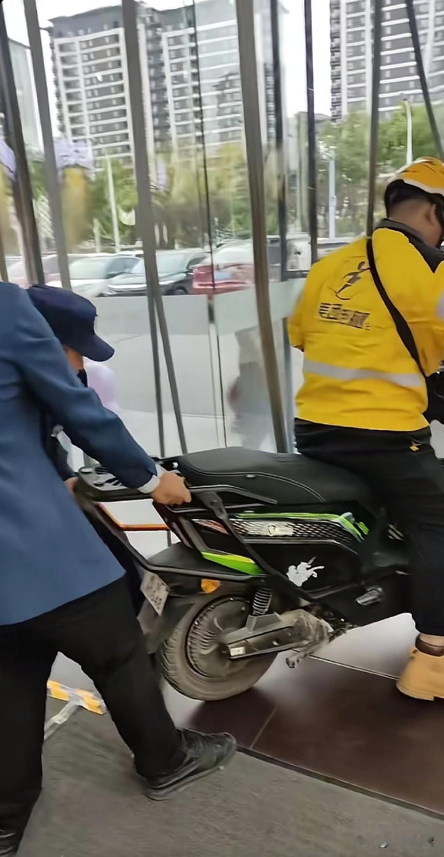 送个外卖都骑别人店里了? 这个视频有点掐头去尾,也不知道为什么送个外卖会骑到别人店里了,但无论前因后果如何,我觉得这是最基础的一点,你不可能把车骑到别人店里去吧,肯定是外卖员有点问题。两个人都拉不住他还想跑。 不知道你遇到过没有?