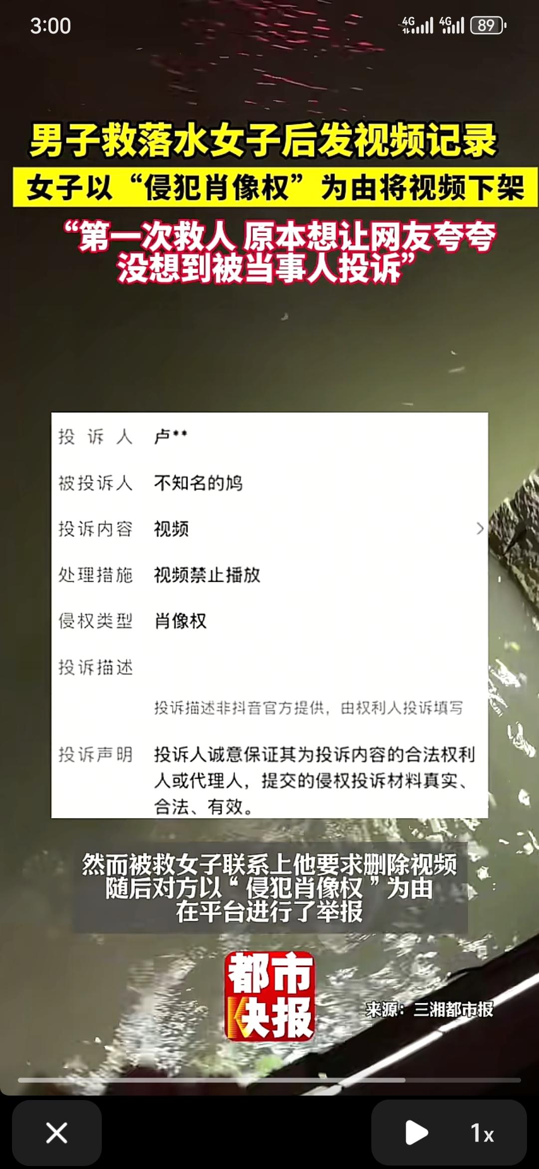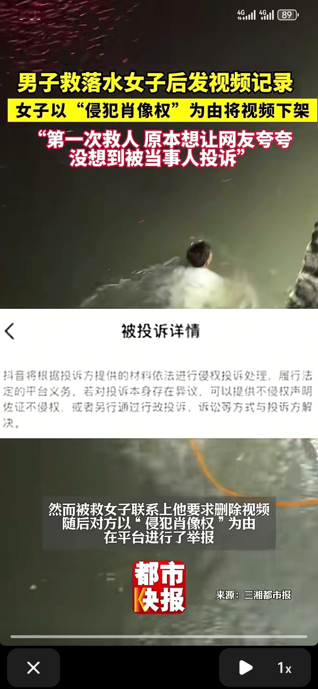 我救了你, 你却还举报我, 10月14日,高先生发现一名女子落水后,当即下水拯救,岸上的行人也在拍视频记录 高先生将女子救下来后,发视频想让大家夸夸他 但是,被救的女子刷到视频后,反手以“侵犯肖像权”为由,举报视频,最后视频被平台下架 在视频里面,能听出来高先生的无奈和失望 大家觉得这样的做法对吗?如果我要是这样做,良心过意不去
