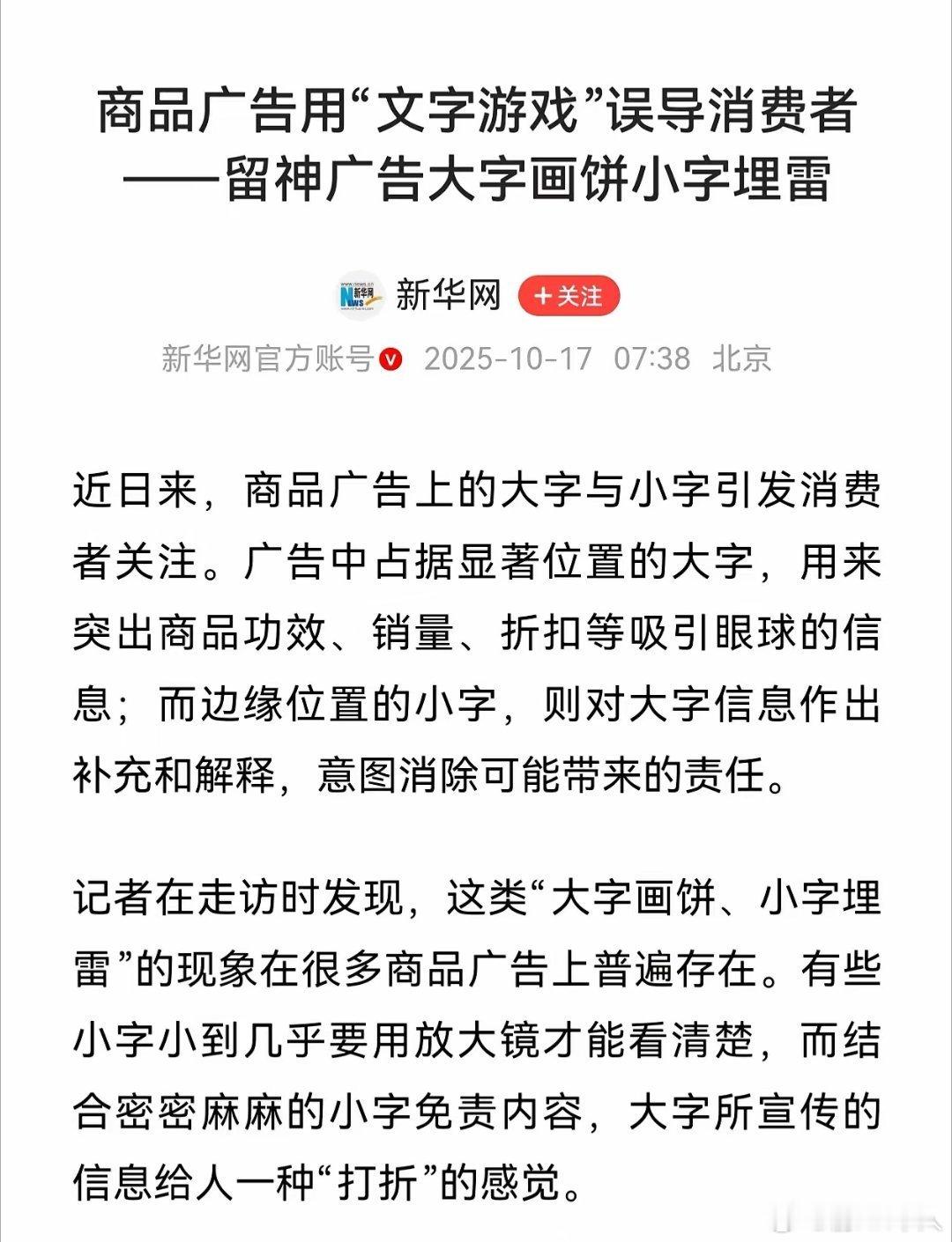 2️⃣ 广告大字画饼,小字埋雷【图3】by新华网