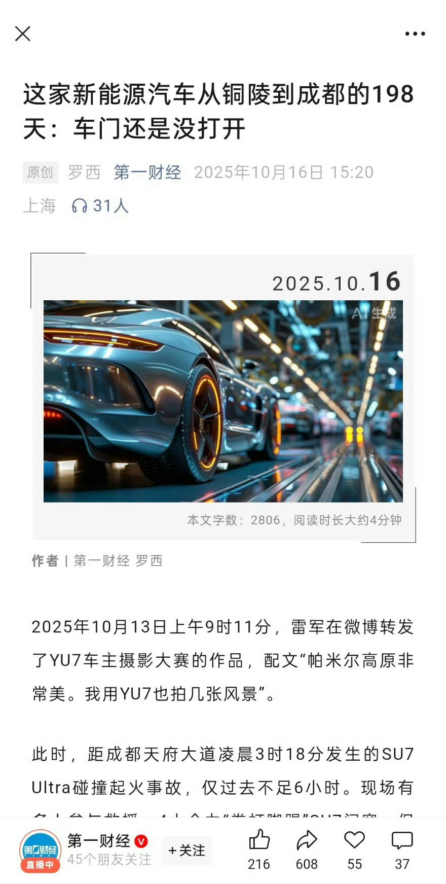 造年轻人的第一台车而不是最后一台成都小米SU7事故车门为何无法打开