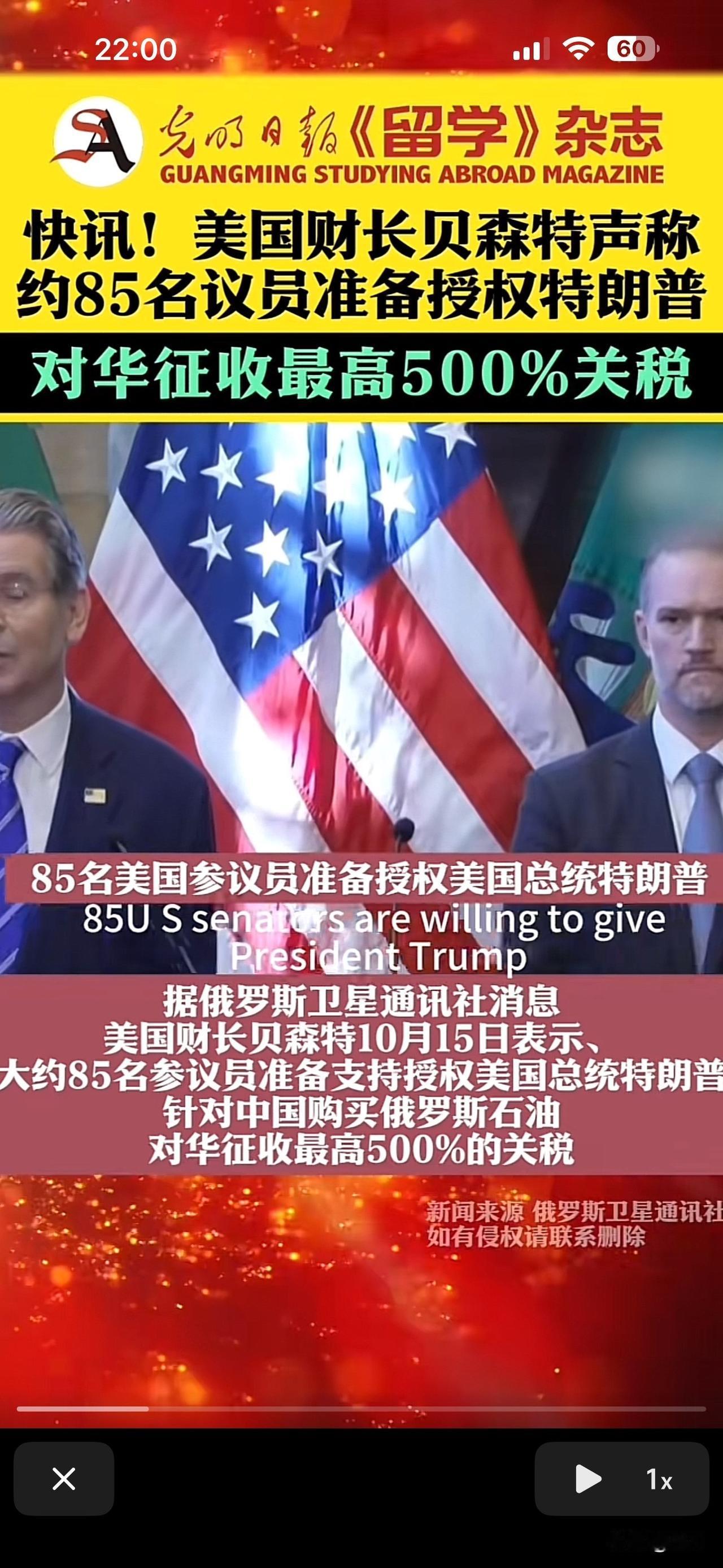 快讯,美国财长贝森特生称,对华征收500%关税。大家怎么看?