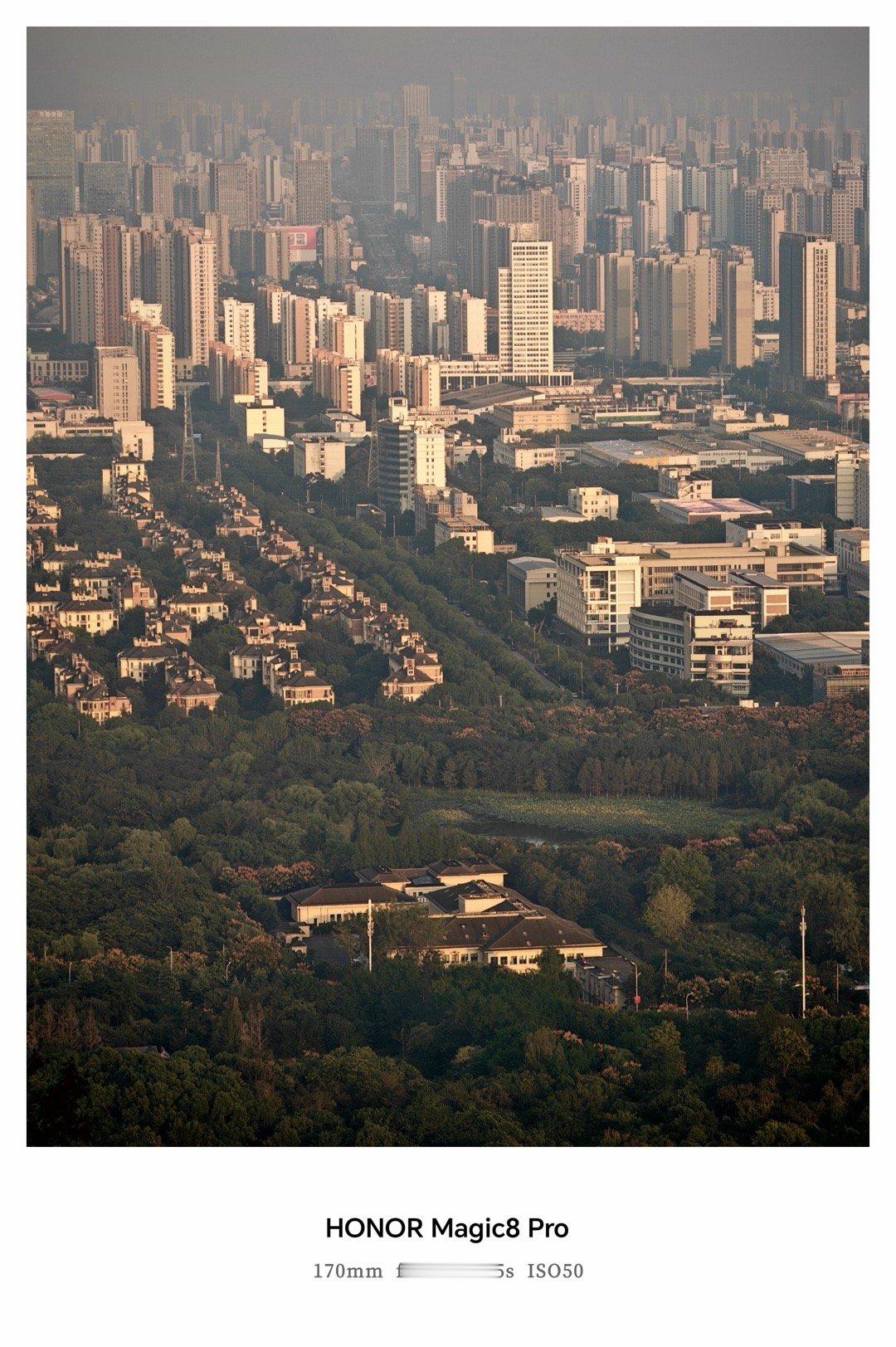 用荣耀Magic8 Pro在山顶拍城市天际线,还有树木,真的很有感觉!