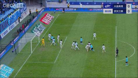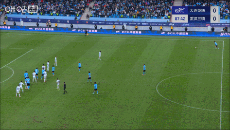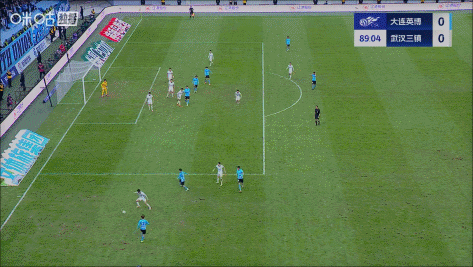 第88分钟,大连远距离定位球开出,武汉门将郭嘉宇出击失误,大连绝杀比赛的机会被门线解围↓