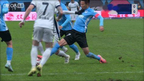 第90分钟,武汉门将郭嘉宇神扑救主化解赵学斌近距离的头球攻门↓