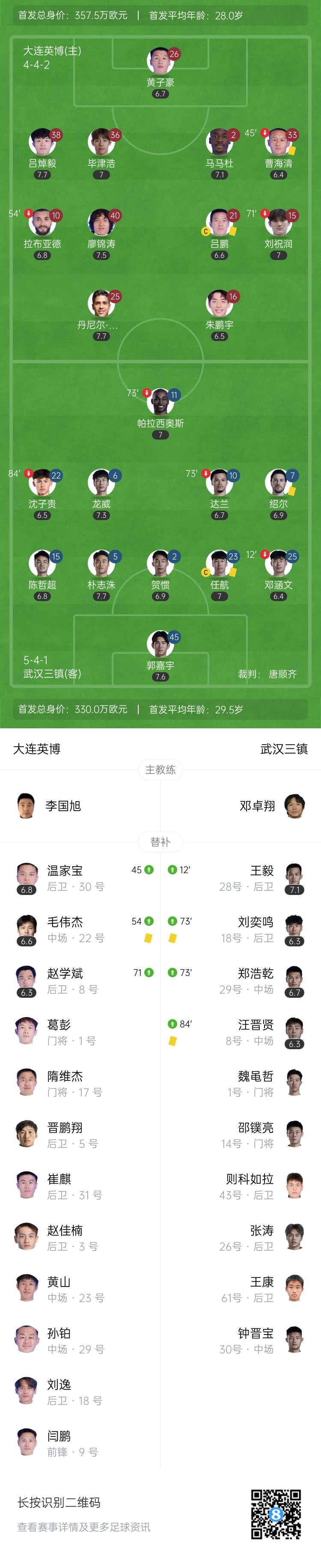 [双方首发及换人信息]