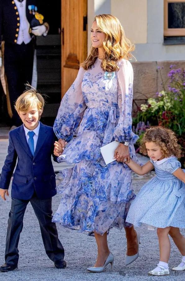 回顾一下瑞典玛德琳公主的一个经典造型 2021年,玛德琳拖家带口参加侄子朱利安的洗礼。她穿着来自Zimmermann的白底碎花蛋糕裙,搭配单侧发夹就是一株行走的紫藤花 Zimmermann是个来自澳大利亚的设计师品牌,以各色碎花裙著称。玛德琳之前买这牌子不多,但紫藤花裙的确与她气质十分契合,作为三个孩子的妈,她一直很适合花花草草的造型,甚至浑身都是花也没有太大的违和感,反而跟个花仙子似的少女心十足