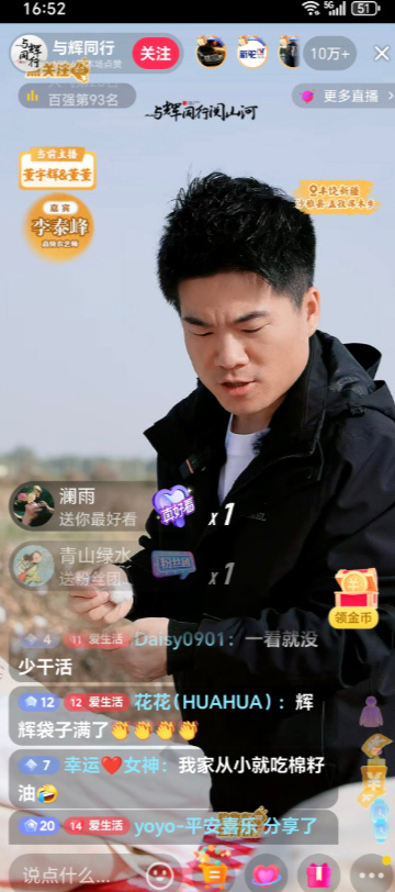 太有趣了,今天与辉同行的直播间是董宇辉在新疆下地里摘棉花,刷到视频的时候,我都噗嗤一声笑出来了,有文化的大主播十分接地气。摘了一口袋棉花,又摘棉花籽,董宇辉边听边学,直播间里也好热闹,称赞董宇辉干一行像一行。好多网友表示还是第一次见摘棉花,第一次听说棉花籽还能榨油,棉花全身都是宝,真是涨知识了~