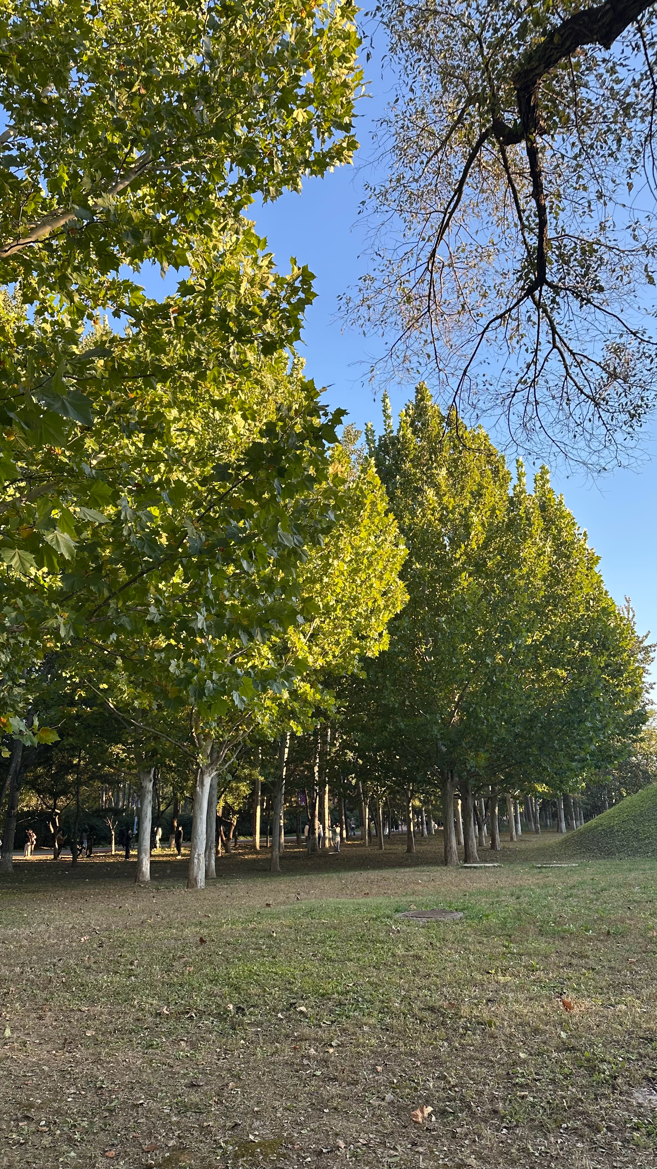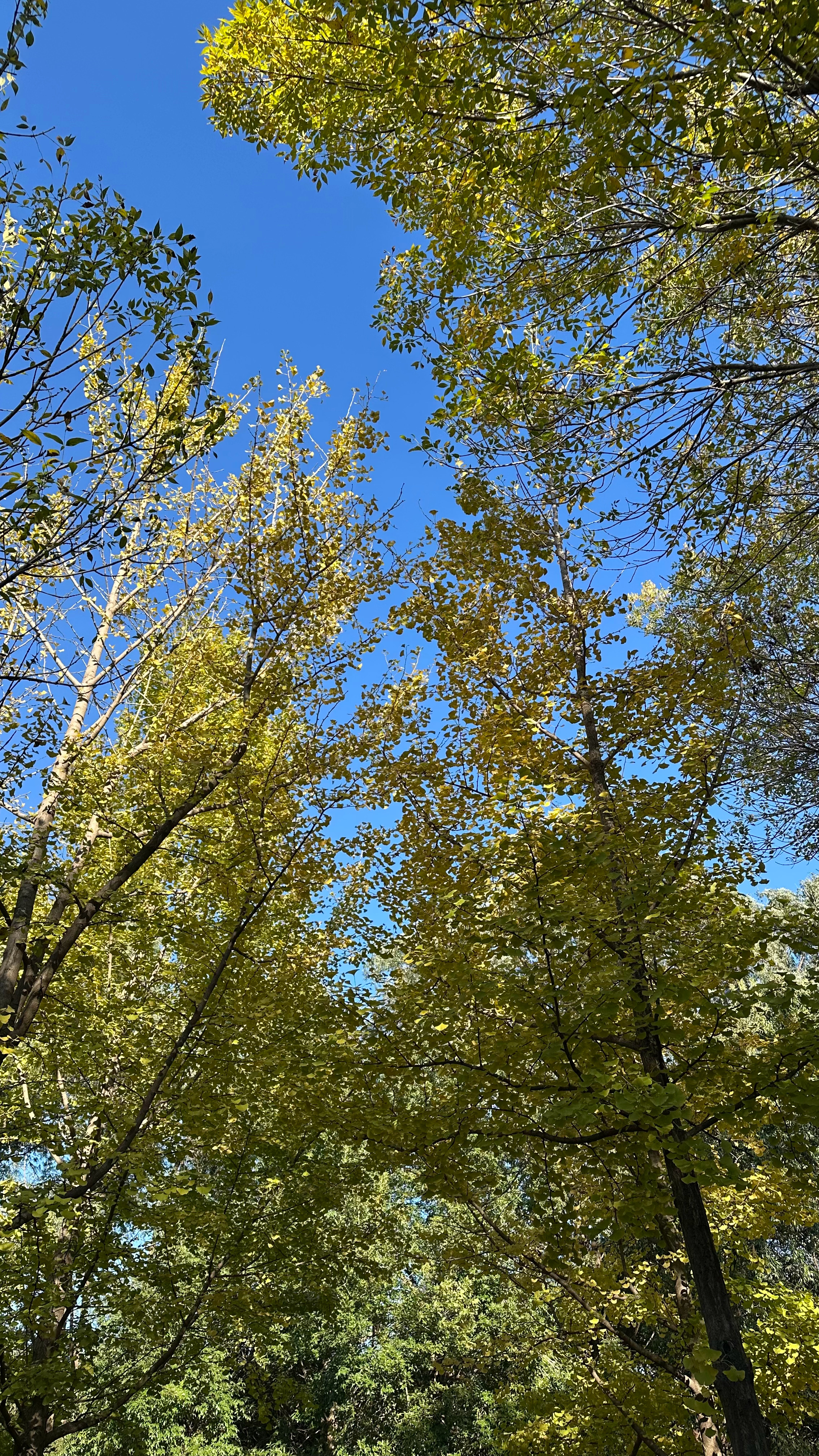 但是已经有了秋天的感觉,好几棵白蜡黄了,地上好多落叶