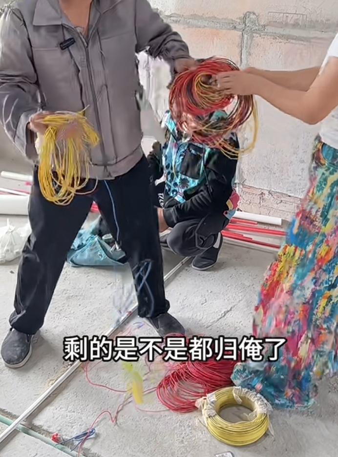 女子装修房子包工包料水电安装完成后,包工头准备把剩下的电线和塑料管打包,岂料这时候女子过来检查水电安装情况,发现包工头正收拾地上的剩余物品,尤其是一卷卷的电线,她心里也想据为己有于是大声喝斥包工头,你走就走为什么要收拾地上的电线,包工头说包工包料剩下多余的归他,女子说这是我出钱买的没用完怎么可能归你,包工头说:是没用完的包工包料就是这样,蝇头小利您就别在乎了,女子说:啥蝇头小利这怎么也得值三四百,今天必须给我留下,包工头不乐意说:那不行这我必须带走,女子一看他挺硬气的于是口气变得也强硬起来,那个架势有点泼妇的味道,包工头一看这不是好惹的主啊!于是放下刚才的倔强说:行剩下的你想要是吧!我这名工友也是剩下的,他拿了你的工钱现在我不要了,一起和这些剩料全部给你,女子一下子懵了说:那个人都秃顶了,我才不要嘞,我只要剩下的电线。 说着包工头就离开了,可那么工友站在那里看着女子一言不发,女子心里发怵说:你盯我干嘛!秃顶工友说:包工头说了他不要我了,和这些电线一起打包给你,以后我就是你的人了,女子连忙摆摆手说:你给包工头打电话,这些电线我不要了,你赶紧跟他一起走,秃顶工友说:跟着你肯定吃香的喝辣的我才不嘞,女子实在是无奈了说:我给你们加五百,把电线和剩下的物料都归你们赶紧走,秃顶工友非常不情愿的打给包工头说:回来吧人家愿意让你拿着剩下的电线还有另外多给500块,电话的那一头包工头笑的非常得意,小样想跟我斗你太嫩了,真的是阳谋无解,姜还是老的辣,用秃顶才能打败魔法,这叫聪明绝顶。