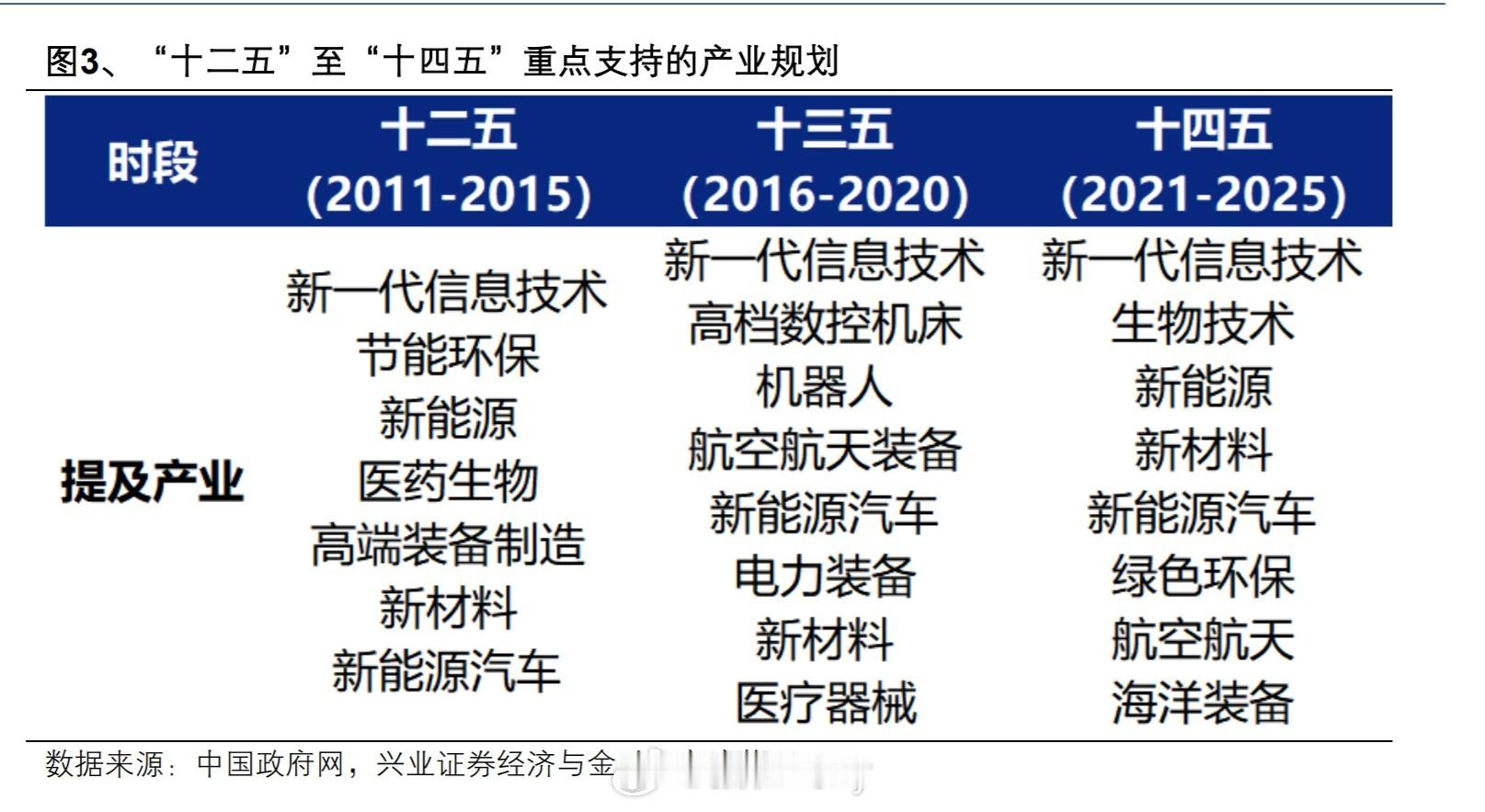 “十二五”至“十四五”重点支持的产业规划