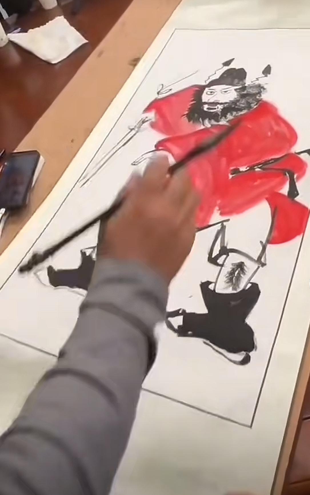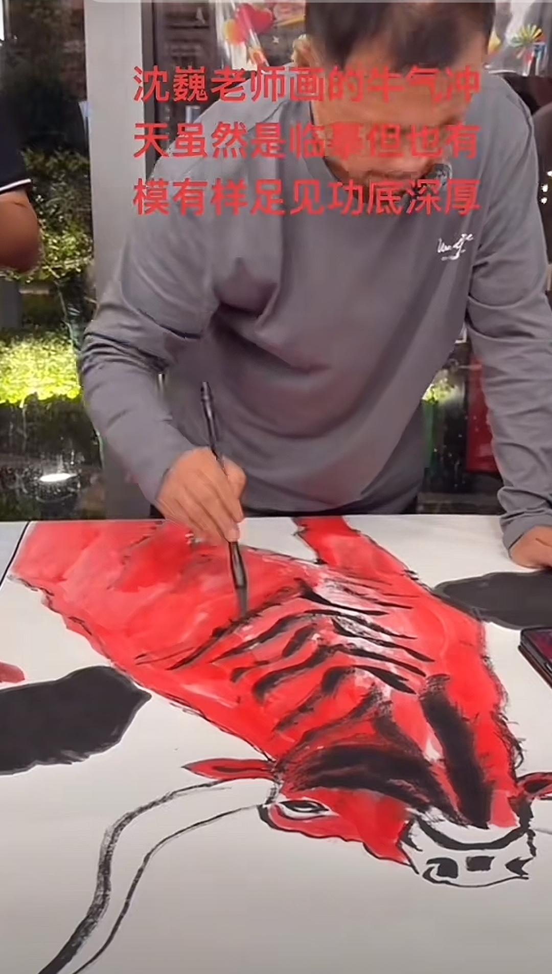 沈巍写的字画,还是挺耐看的,虽然他常常说自己的字画没有水平,不知道大家为什么喜欢? 但是,只要是沈巍写的字画,就有人喜欢。如下图,他画的《牛气冲天》和《钟馗》笔画粗犷有力,气势如虹,把牛和人的霸气演绎得淋漓尽致,怎不惹人喜欢?