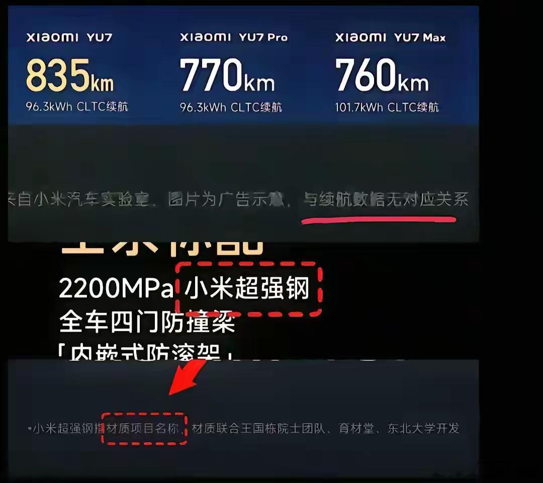 一,小米汽车宣传时,弄几个大字“小米超强钢”,还以为这钢有多厉害呢,想不到下面还藏着一行小字“小米超强钢指材质项目名称”。