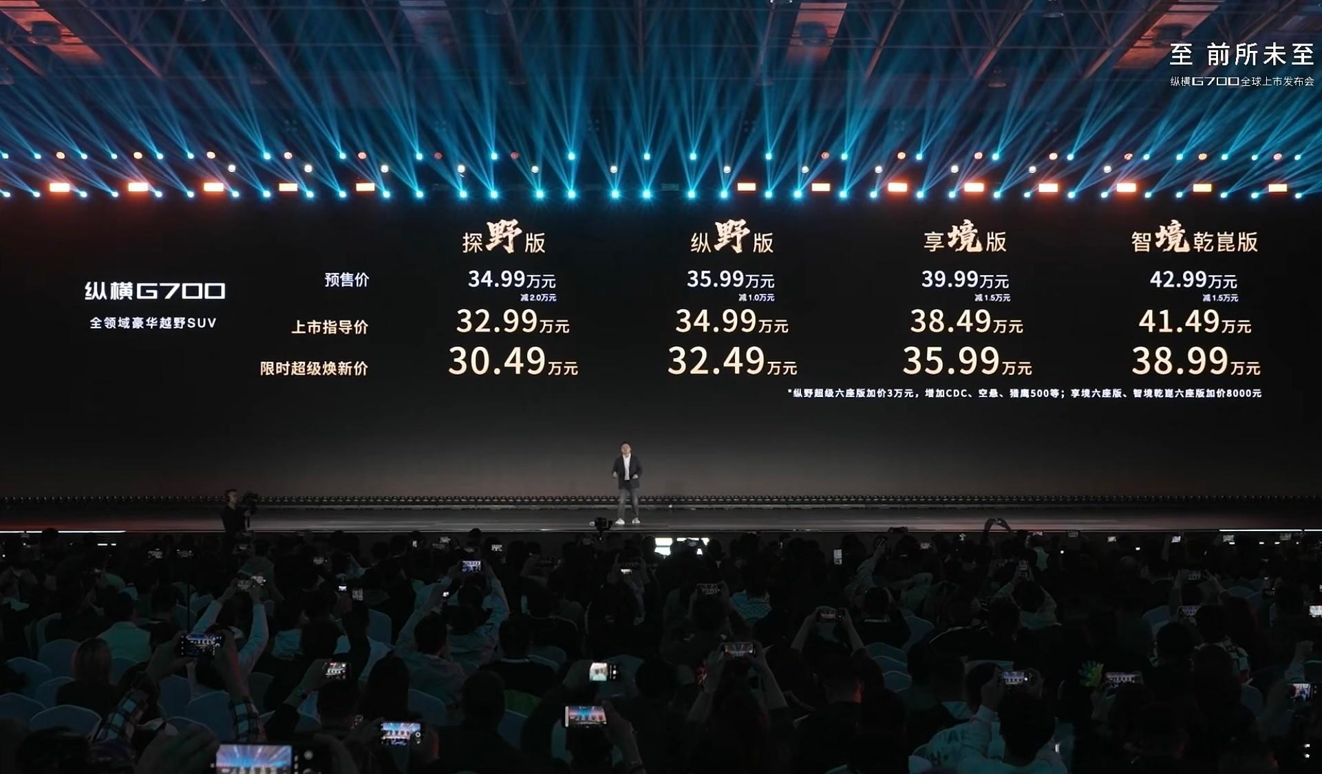 豪华硬派越野车纵横G700上市,四款车型置换补贴后售价30.49万-38.99万