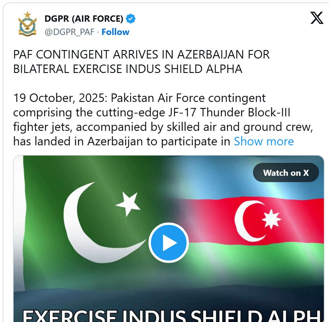 JF-17“枭龙”突然出现在阿塞拜疆,一来就是三架,还都是Block3新版本。外界一度认为,这是出售给阿塞拜疆的40架“枭龙”首批,毕竟之前阿塞拜疆和巴基斯坦,曾经签下一项军售协议,金额高达46亿美元。 原以为这是接收战机,但巴基斯坦空军发文进行了澄清,确认这些战机是为了演习临时部署,还没有进行移交。巴空军出动3架“枭龙”前往阿塞拜疆,参与代号为“印杜斯盾”的双边空战演习,也标志着两国军事合作进入新阶段。公开视频可见,还有伊尔-78加油机陪同,阿塞拜疆肯定会装备,但应该不是这次。这种联合演习,可以为将来接装、并开展人员培训积累经验,不出意外JF-17“枭龙”大卖是预料之中的事情,售前工作这么好未来还有更多国家购买。[微笑]