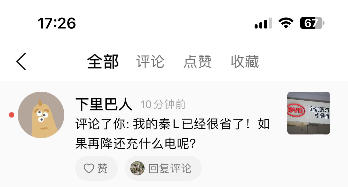友商:我电池比你的大 比亚迪:我OTA降低能耗 友商:我80电池配小油箱 比亚迪:我再OTA降低油耗 友商:继续加大电池至115度 比亚迪:我降低车重 友商:我简单粗暴,快,短期消费者感受得到 比亚迪:坚持技术路线,有脑子的客户都会选我 友商:我......崴脚断轴了 比亚迪:继续降低能耗,同时开源:量产太阳能车顶和减震器发电 友商:[吐血][吐血][吐血] 比亚迪:承让[作揖]