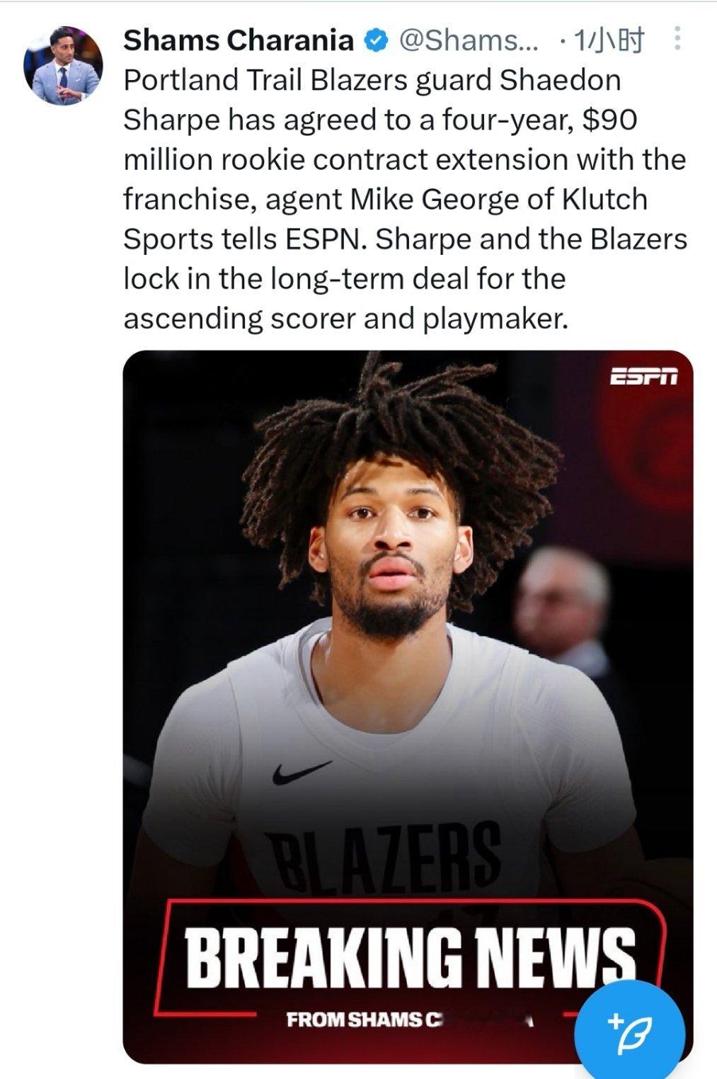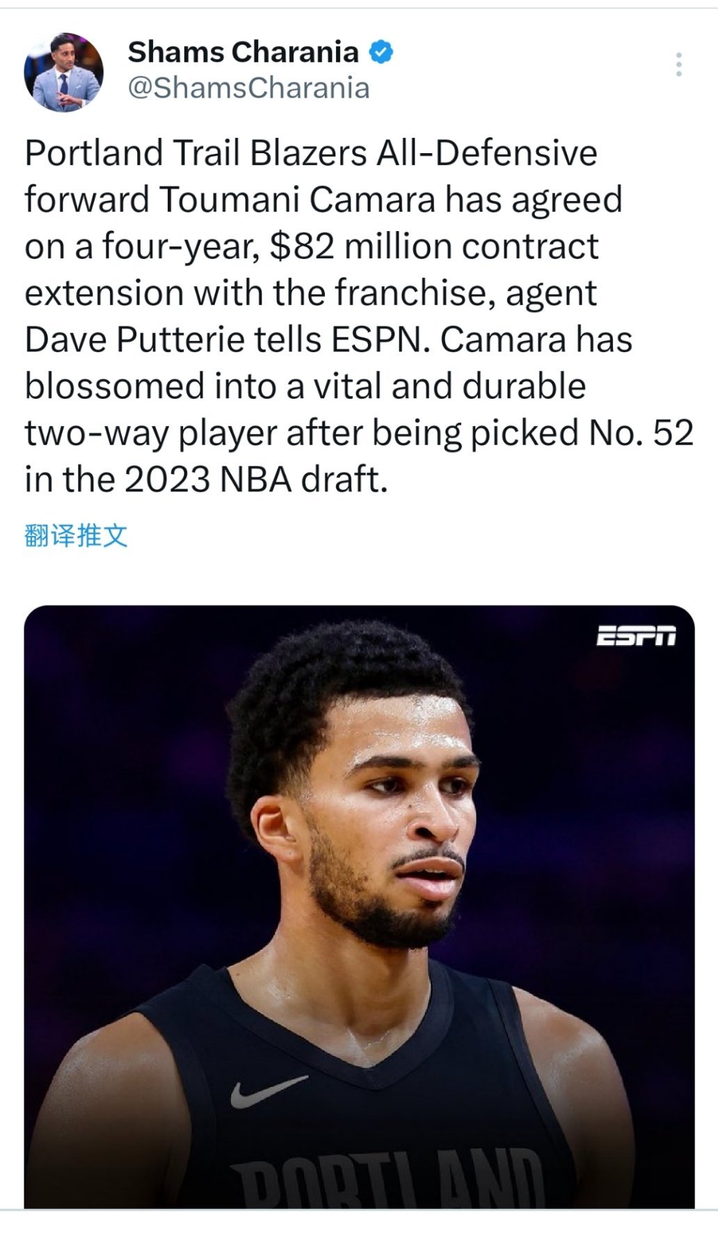 ☞有一说一,开拓者给夏普和卡马拉的合同都不算溢价,挺符合当下薪水的