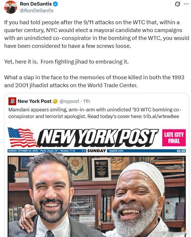 如果在“9·11”世贸中心遭受袭击后,你告诉人们说,在不到25年的时间里,纽约市会选出一位与世贸爆炸案未被起诉的同谋一起竞选的市长候选人,大家肯定会认为你脑子有点不正常。