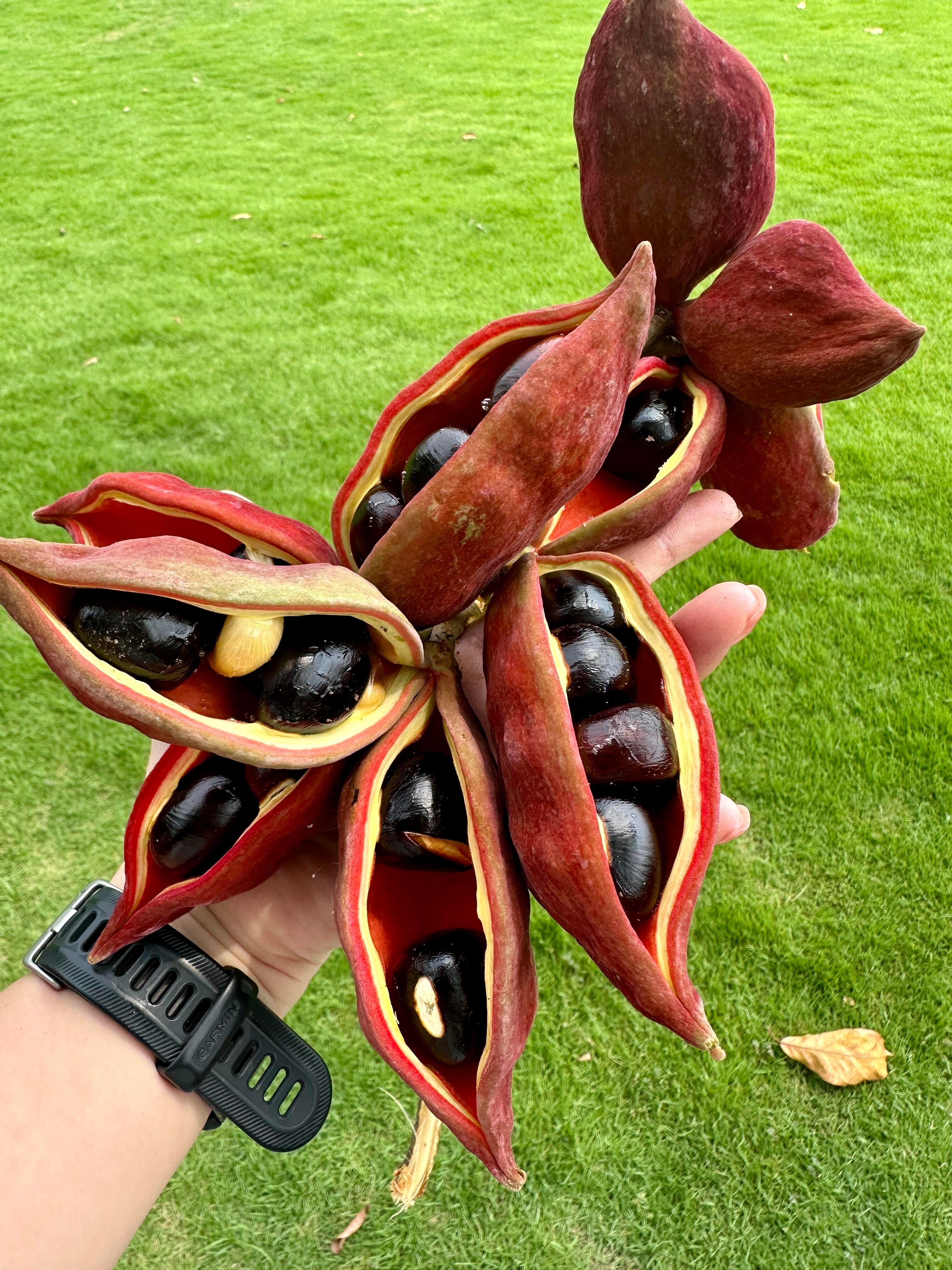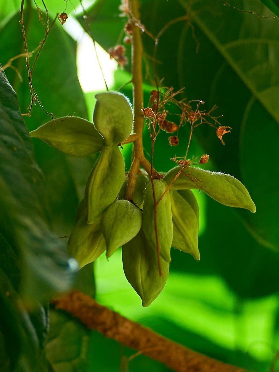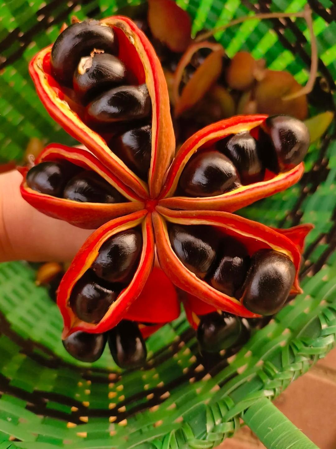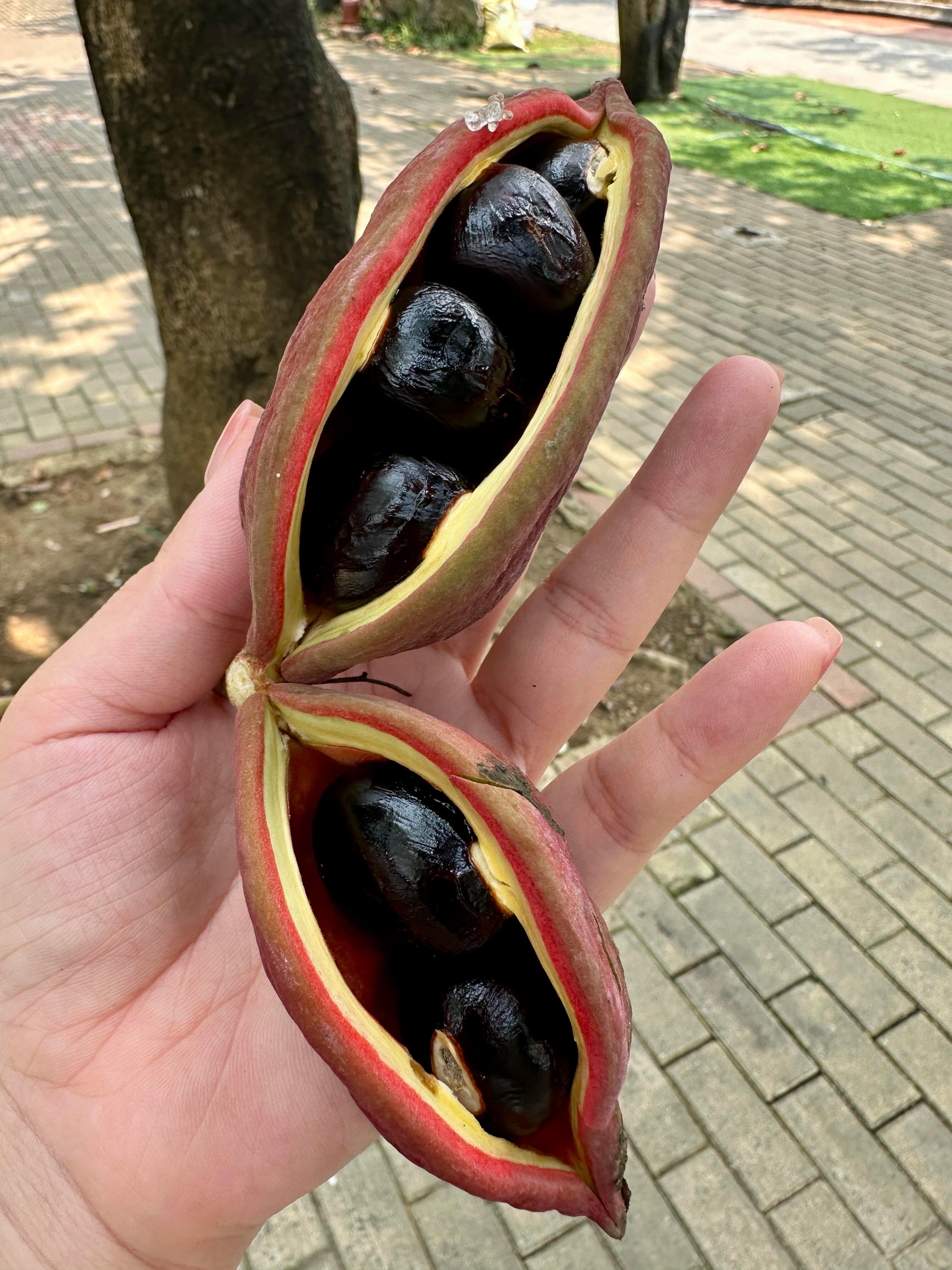 植物科普奇妙生物圈苹婆又名凤眼果,因成熟果荚裂开后,黑亮种子嵌在荚内形似凤眼而得