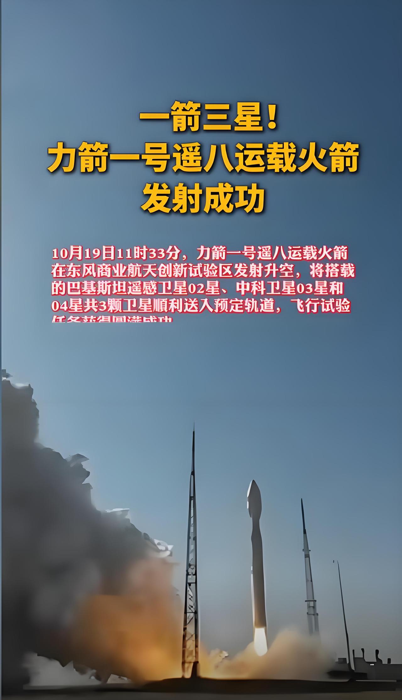 祝贺!刚刚!我国成功发射!10月19日11时33分,我国在东风商业航天创新试
