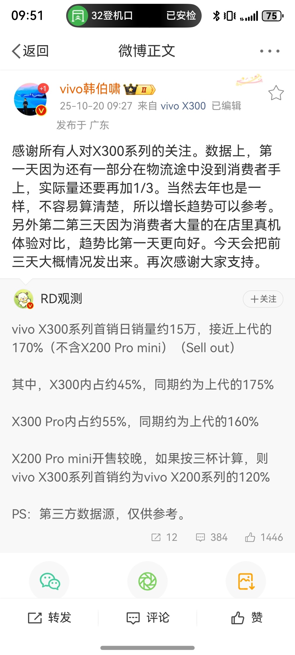 vivoX300系列首日卖了挺多的,从比例来看Pro更好。近期的新机都是火大屏