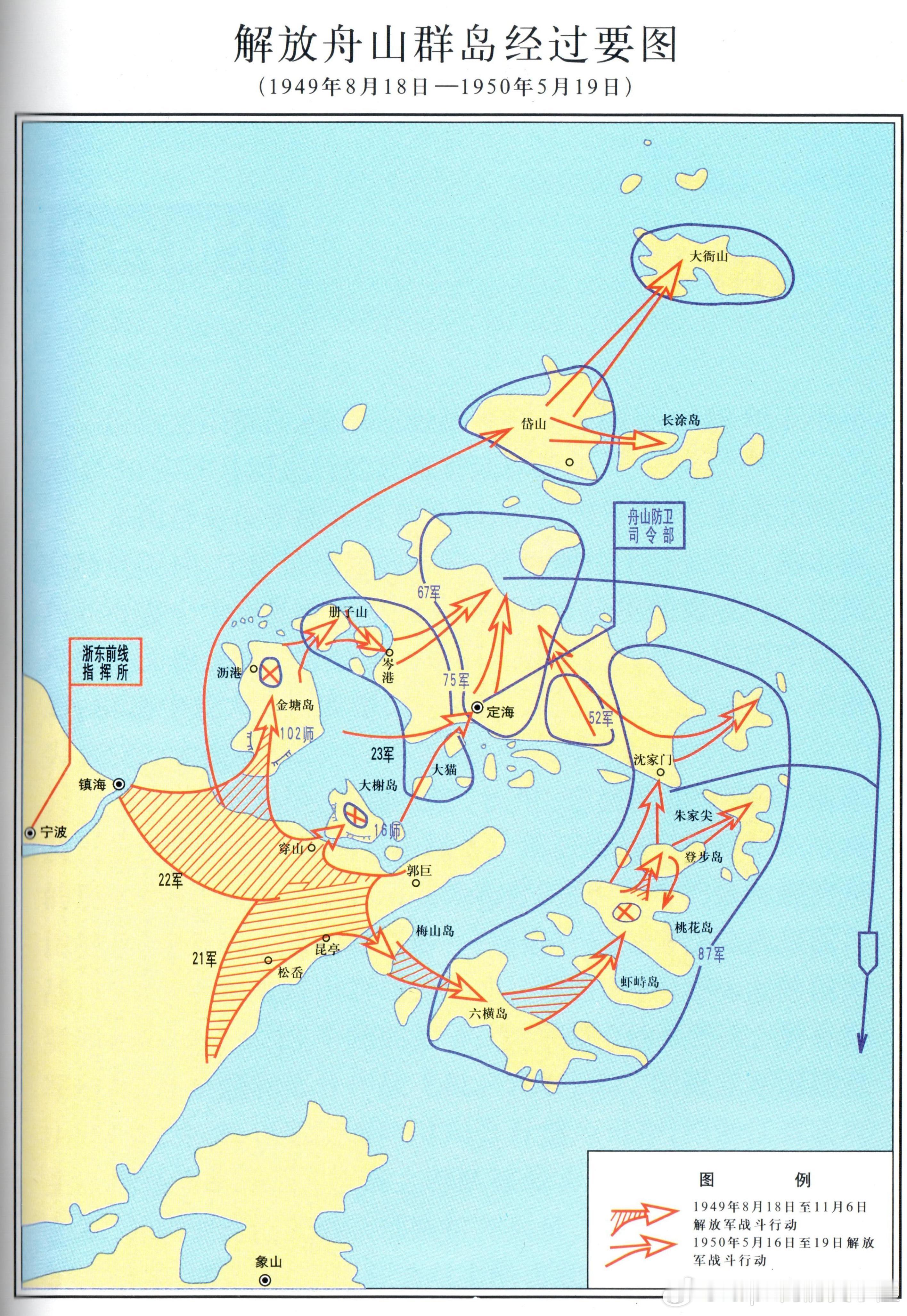 三野于16日立即发出全线攻击的命令。当日,二十一军占领登步岛,二十二军占领册子岛,二十三军进驻大猫岛。17日,二十三军从中路进占定海城,二十二军占领舟山岛西部,二十一军占领沈家门和朱家尖岛。18~19日,岱山、长涂、衢山、普陀山等岛全部解放。军事历史全触达